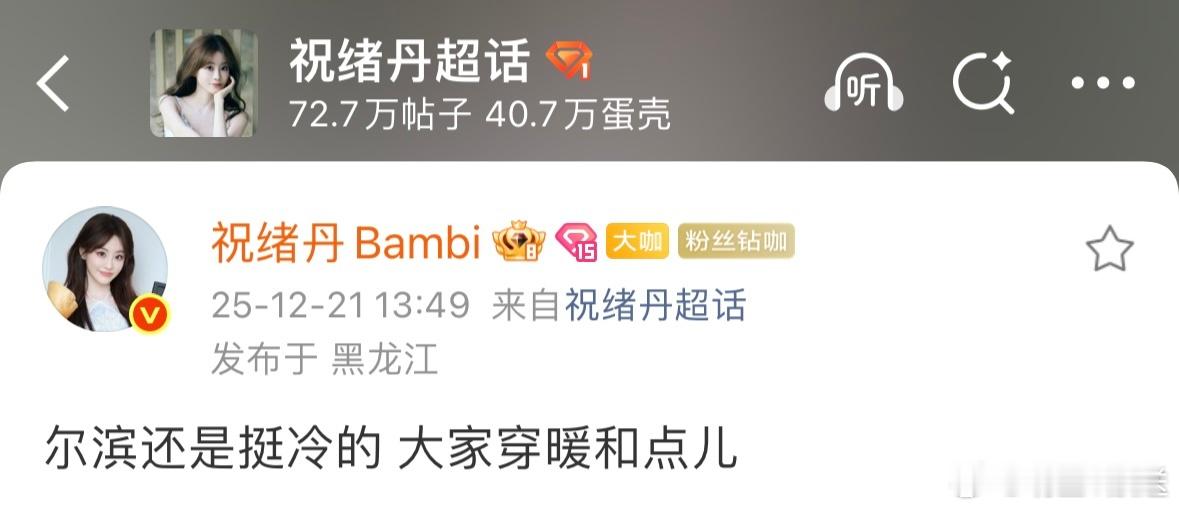 祝绪丹说尔滨还是挺冷的 这个就这样暖心!文案直播的时候就说“尔滨还是挺冷的”,视频直播更是直接被冻掉线了,这闭环谁笑了!可能尔滨还是太权威了,祝祝来我怀里会暖和点😽