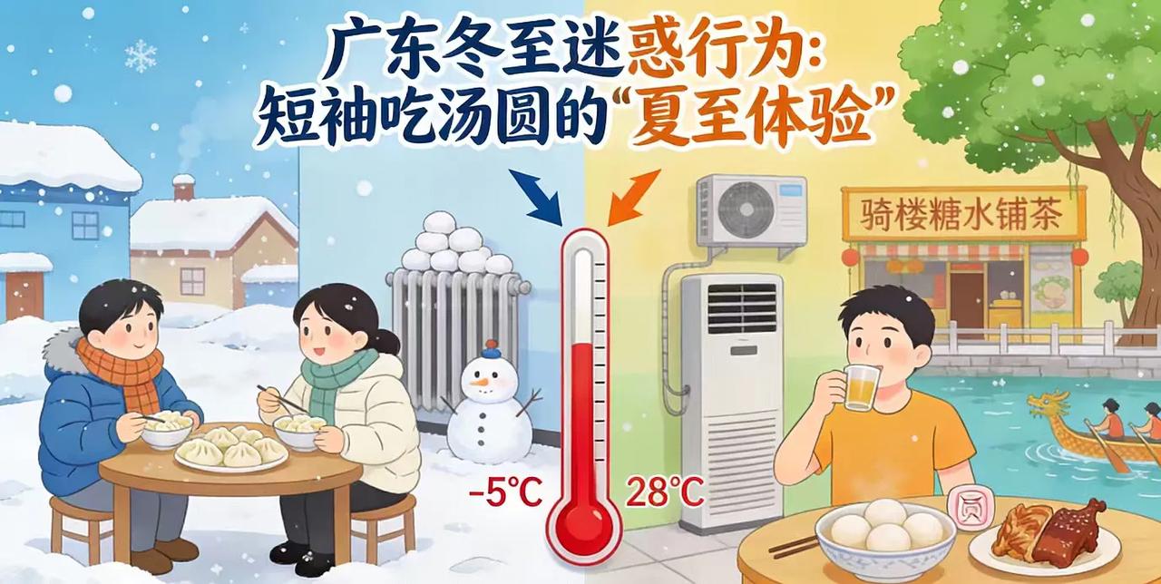 广东冬至如夏至?穿短袖吃汤圆,谁说中国冬天只有一个版本? 冷空气南下到广东境内突然失去了方向感,天气预报显示的温度数字和街上穿着短袖的行人形成了奇妙对比。 上午十点,广州塔下的珠江边,一群穿着短袖晨练的老人刚刚结束太极拳。而此时,远在两千公里外的哈尔滨中央大街上,行人裹着厚重的羽绒服,呼出的气息瞬间凝成白雾。 同一时间,中国南北展现出截然不同的冬日画卷,而广东正是这幅画卷中最特别的一抹亮色。 01 节气反差,南北分过两个冬 中国二十四节气的发源地在黄河流域,那里的冬至意味着数九寒天的开始。但对位于北回归线穿过的广东而言,节气更替的体验独树一帜。 “冬至一阳生”在广东呈现出字面意义的“阳气”,白天的气温常常达到20摄氏度以上。难怪广东人常开玩笑说:“我们的冬天是北方人的春天。” 这种气候反差不仅仅是感官体验的不同,更影响着生活方式。当北方人围坐在暖气旁时,广东人可能正享受着户外阳光。四季常绿的植物和冬日盛开的鲜花,让广东的“冬季”色彩斑斓,缺少北方那种万物凋零的寂静感。 地理专家指出,广东特别是珠三角地区,因南岭山脉的阻挡作用,冷空气南下至此已是强弩之末,形成这种独特的“暖冬”气候。 02 岭南习俗,暖冬中的冷食趣 面对“夏日冬至”,广东人创造了独特的习俗。吃汤圆是冬至标配,在广东却有了暖冬版本。冰镇汤圆、椰汁西米露汤圆这些清凉甜品应运而生,与北方的热汤圆形成鲜明对比。 在潮汕地区,冬至有“冬至丸,一食就过年”的民谚。有趣的是,这些“冬至丸”常被浸泡在凉糖水中食用,消解着广东冬至日的暖意。 与北方“冬至饺子夏至面”的传统不同,广东冬至桌上常见的是清补凉汤。这不是北方人想象的滋补热汤,而是一种清热祛湿的凉性汤水,适应岭南地区冬日依然温热湿润的气候特点。 这种饮食智慧体现了广东人“因时因地而食”的生活哲学,不盲目追随节气传统,而是根据实际环境调整习俗。 03 文化差异,暖冬下的生活习惯 在广东,“穿短袖过冬至”绝非夸张。商场里,冬装区域旁边就是春装新款;早晚温差大的情况下,广东人掌握了“洋葱式穿衣法”——短袖加薄外套,随时应对温度变化。 广东的冬季活动也完全不同。12月份,露天大排档依然人声鼎沸,冰镇啤酒的销量不降反增。而在北方已转入室内活动的季节,广东的公园、绿道、江边依然满是散步、跑步的市民。 广州的冬至夜,一家老小常常选择在户外餐厅庆祝。孩子穿着单衣在餐厅旁的空地奔跑玩耍,老人喝着温茶聊天,构成了一幅温馨的冬至夜景。 一位在广州生活了十年的北方朋友感慨:“在老家,冬至是‘猫冬’的开始;在广东,冬至是一年中户外活动最舒服的时候。” 04 气候变暖,当冬至越来越热 随着全球气候变暖,广东的“夏日冬至”现象愈发明显。气象数据显示,近三十年来,广东冬季平均气温上升了1.2摄氏度,而近五年的冬至日最高气温多次刷新记录。 2022年冬至,广州气温达到27.8摄氏度,创下有气象记录以来的冬至日最高温。这一温度甚至超过了北方一些地区的夏季气温。 气候专家指出,这种变化并非广东独有,但地处低纬度的广东感受更为明显。亚热带特征强化,冬季缩短,夏季延长,已经成为广东气候变化的明显趋势。 这种变化影响着当地生态系统。一些传统上在春季开花的植物,如木棉花,现在偶尔在冬至前后也能见到绽放,打乱了自然的节奏。 05 南北对话,多元中国的季节理解 广东的“夏日冬至”现象提醒我们,中国的地域多样性远超想象。从黑龙江的冰雪世界到广东的暖阳高照,同一节气在不同地区呈现出多彩面貌。 这种差异不应该是南北对立的源头,而应是相互理解的窗口。广东的暖冬、江南的湿冷、北方的严寒,共同构成了中国冬季的丰富画卷。 也许正如一位诗人所写:“北方人在冬至数九盼春,广东人在冬至感受夏的余温,而我们共享的是对时光流转的敬畏与对生活的热爱。” 在广东过冬至,不要惊讶于穿短袖的行人,也不要怀疑桌上那碗凉汤圆的“合理性”。这里的人们用适应当地的方式,庆祝着这一古老节气,演绎着中国文化的多元与包容。广东过暖冬 广东入冬穿搭 广东短袖过冬 冬至宜吃汤圆 广东人降温穿搭 广东人过冬穿搭 南方冬至