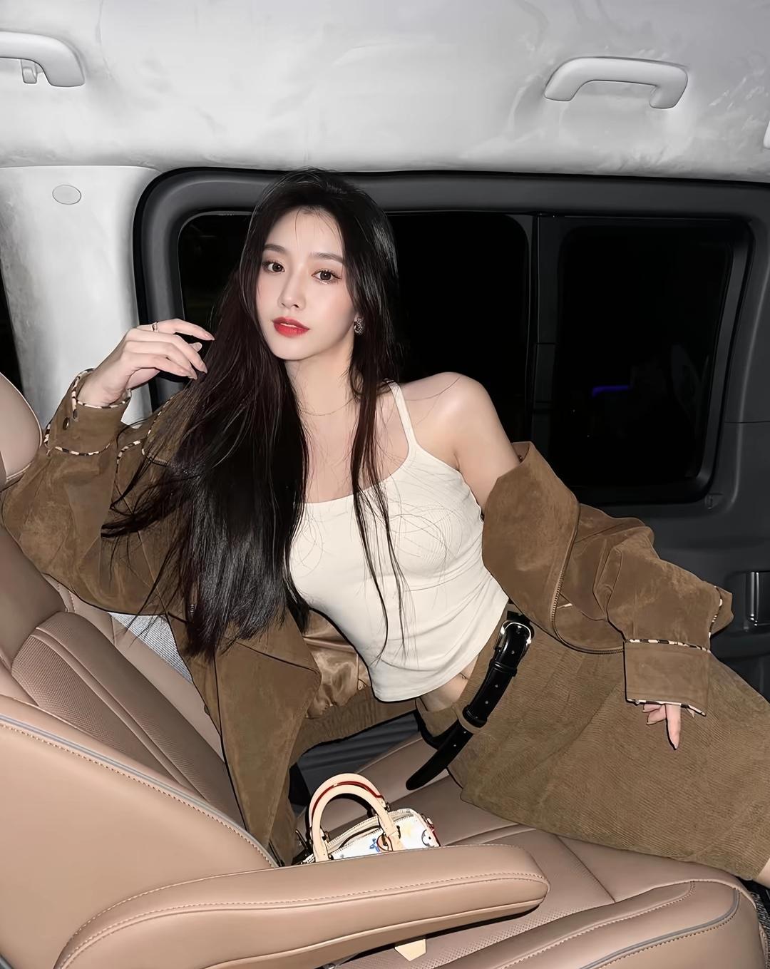 夜晚车内的迷人时刻,时尚穿搭与优雅气质并存。