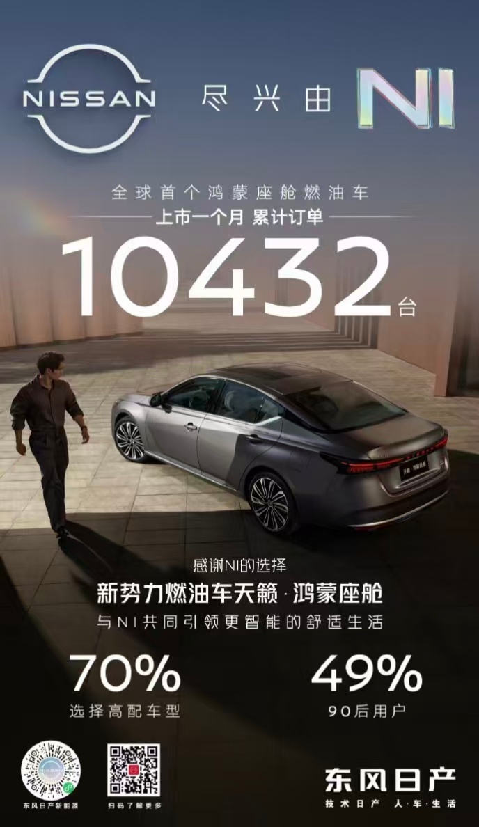 如果你关注最近一年的车市,你可能会发现网络声量比较高的燃油车很少,智能舒适的燃油车可以说没有而在广州车展上发布的日产·天籁鸿蒙座舱却是个例外,发布三十天,这辆车的订单就已经突破一万了,对于最近发布的燃油车来说,这个成绩绝对算得上突出华为高管称智能化是购车决策关键点华为高管为天籁过万摆冬至宴 前段时间我也在网上看到过这样一条评论:“我喜欢开油车,但很少有燃油车能满足我对智能化的需求”。天籁就做的很好,它结合了鸿蒙座舱5带来的智能化升级,让很多一二三线的年轻家庭和公司骨干们都选择了这台车,这份认可的含金量还是很高的