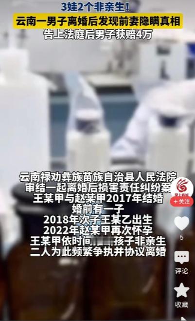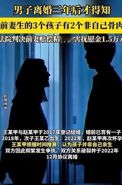 云南昆明,妻子怀上第3胎,男子一算日子不对劲。争吵之下,两人协议离婚。离婚3年后,男子带着大儿子、二儿子去做亲子鉴定,结果令男子大跌眼镜,二儿子也不是自己亲生的。气愤之下,男子将前妻起诉至法院主张精神损害抚慰金、欺诈抚养费等合计22万余元。法院这样判! 三个孩子里,竟然有两个都不是自己的亲生骨肉,这事儿说出来,谁听了都得替他憋屈。 事情得从2017年说起,当事人王某甲(化名)和赵某甲(化名)领了结婚证,在此之前两人已经有了一个大儿子。 婚后第二年,二儿子也出生了,一家四口看着挺圆满。可这份圆满,在2022年被打破了。 那年赵某甲又怀上了三胎,王某甲闲着没事一算日子,心里咯噔一下,这怀孕的时间点不对啊,根本对不上两人在一起的时间。 怀疑的种子一旦种下,就再也拔不掉了。 王某甲拿着这事跟赵某甲对质,两人吵得不可开交,原本就不算牢固的感情彻底破裂。 吵到最后,两人在2022年12月签了离婚协议,赵某甲自愿放弃了所有夫妻共同财产,自己带着二儿子过,王某甲则抚养大儿子,双方约定互不支付抚养费。 当时王某甲以为,这事就算翻篇了,哪怕心里还有些疙瘩,也想着日子总要往前过。 可有些事,不是想翻篇就能翻过去的。 离婚后的三年里,当初那点疑虑总在王某甲心里打转,到了2025年8月,他实在忍不住,带着大儿子和二儿子去做了亲子鉴定,结果出来的那一刻,王某甲彻底懵了——大儿子确实是自己的,但他一手带大的二儿子,竟然跟自己没有半点血缘关系。 更让他崩溃的是,当初导致两人离婚的那个三胎,也不是他的孩子。 说白了,婚姻里的三个孩子,有两个都不是自己的,他被蒙在鼓里整整好几年。 气愤到极点的王某甲,在2025年11月把前妻赵某甲告上了法庭,要求她赔偿精神损害抚慰金和这些年花在非亲生孩子身上的欺诈抚养费,加起来一共22万多。 王某甲觉得,前妻不仅违背了夫妻之间的忠实义务,还刻意隐瞒二儿子非亲生的事实,让他在不知情的情况下签了离婚协议,这笔账必须算清楚。 最终法院的判决,却和王某甲的索赔金额有不小差距。 法院审理后认为,赵某甲的行为确实严重违反了夫妻忠实义务,给王某甲造成了不小的精神伤害,理应赔偿。 但考虑到几个实际情况,并没有全额支持王某甲的诉求,一方面是当地的经济水平,另一方面是赵某甲离婚时已经放弃了全部共同财产,再加上她的实际负担能力,法院最终把精神损害抚慰金定在了1.5万元。 至于抚养费,参照当地的生活标准,按每月500元计算,判决赵某甲返还2.55万元,两项加起来,赵某甲一共要给王某甲4.05万元。 其实站在旁观者的角度看,这个判决也算合情合理,王某甲的委屈和愤怒完全能理解,自己掏心掏肺付出多年,最后发现是一场骗局,换谁都受不了。 但法院判案既要考虑受害者的损失,也要兼顾实际执行情况,要是把赔偿金额定得太高,赵某甲无力支付,判决也落不了地。 这事儿也给所有处在婚姻里的人提了个醒,夫妻之间的忠实义务不是一句空话,它是婚姻的基石。 一旦一方违背了这份义务,不仅会伤害对方的感情,还得承担相应的法律责任。 而对于王某甲来说,虽然赔偿金额没达到预期,但至少讨回了一个公道,也算是给这段不堪的婚姻画了一个句号。 以上都是个人观点,对此您有什么不同的看法,可以在评论区留言讨论!!!