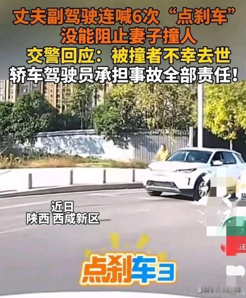 丈夫6次急喊刹车,仍难阻妻子撞人悲剧 近日,某地发生一起令人揪心的交通事故。行车途中,丈夫敏锐察觉前方情况,连喊6次“刹车”,可妻子或是惊慌失措,或是操作失误,未能及时踩下刹车,最终车辆撞上行人。事故造成行人受伤,现场一片混乱。这起事件警示我们,驾驶时务必保持冷静专注,关键时刻,一个小失误都可能酿成大祸。