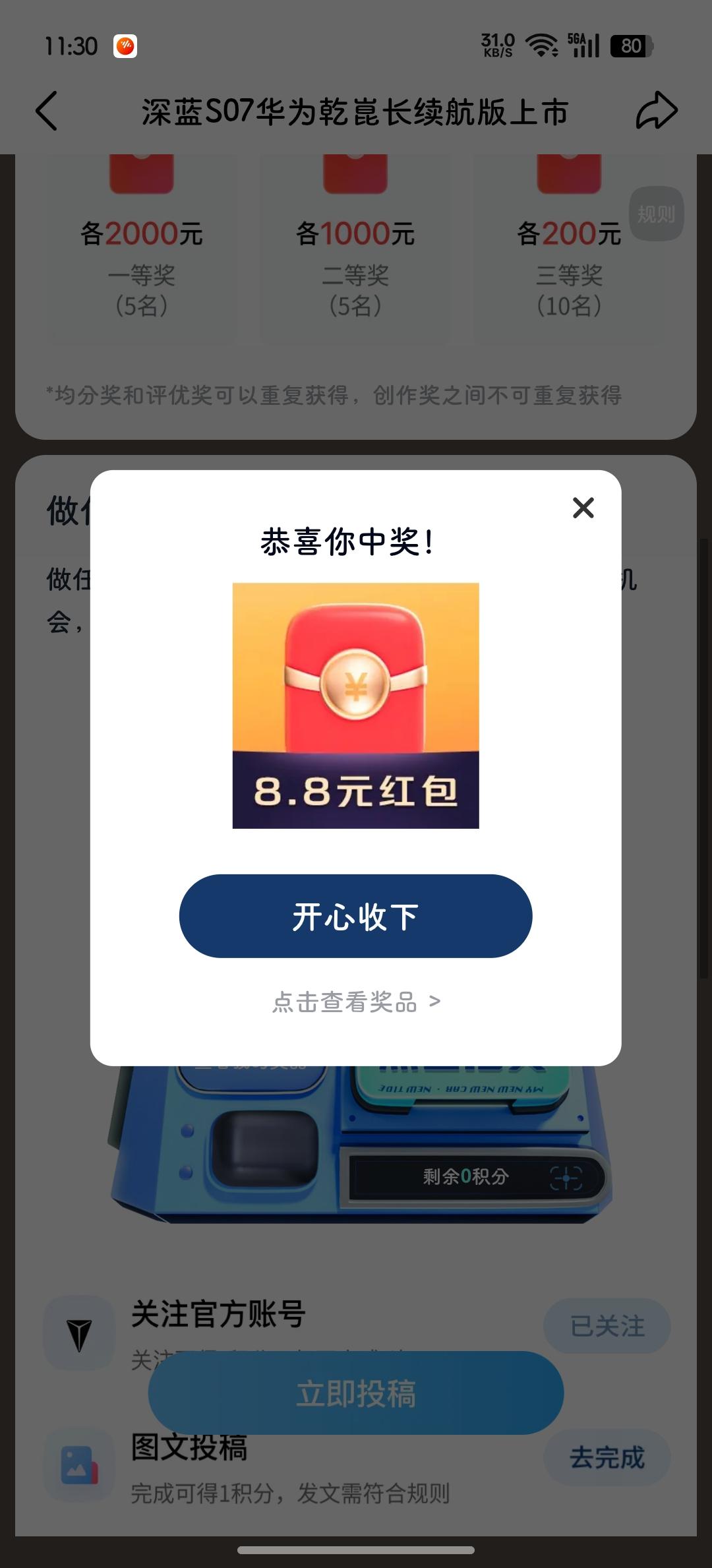 这两天天气不好没拍照,就来晒晒最近抽到的红包吧! 话说鸿蒙的两个征文奖都挺难抽的,好不容易抽到的也就0.88~[我想静静] 🧧🧧🧧🧧[呲牙][呲牙][加油][加油]🧧🧧🧧🧧