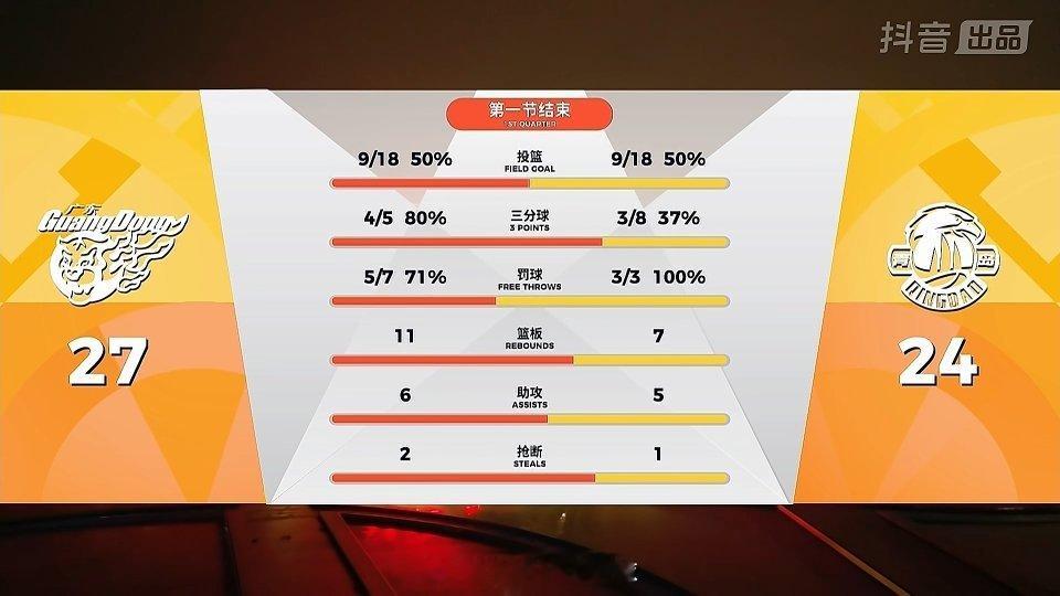 今天第一节打得不错,三分球投的可以,继续保持!广东男篮vs青岛男篮