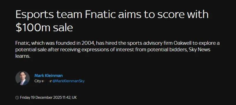 据天空体育报道,电竞俱乐部FNATIC目前正在考虑出售,在和潜在买家洽谈后FNATIC俱乐部的估值或将来到一亿美元。报道称消息人士透露体育和媒体领域的投资者已经表达了兴趣,希望打造一个旗舰型的电竞品牌,而各大媒体公司也在寻求能够贴近更年轻受众的方式。虽然一亿美金看起来很多,但跟FNC各个项目的投入来说,1亿美元基本是杯水车薪...英雄联盟 无畏契约 CS2