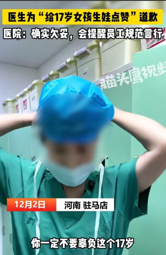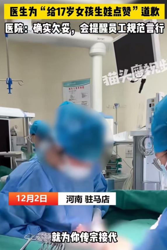 18岁男生把17岁女生弄怀孕生娃,手术的妇科医生居然发视频点赞,并配文:“在花一样的年纪选择生娃,给17岁妈妈点赞!我想对那个18岁男孩说,你一定不要辜负这个17岁就为你传宗接代,把最好的青春献给你的女孩……”网友:未成年怀孕生娃还鼓励? 十七八岁的年纪,课本、习题、课间打闹才是主旋律,可17岁的女孩却跳过了青春里最该肆意的阶段,直接走进产房完成了“母亲”的身份转变。 这件事本身就带着强烈的违和感,突破了大众对青少年成长轨迹的基本认知,更触碰了社会公序良俗的底线。 而最让人无法接受的是,全程参与手术的妇科医生,作为见证者非但没有秉持专业审慎的态度,反而主动把这件事搬到社交平台,用“点赞”的姿态传递出错误的价值导向。 她的配文更是把争议推向了高潮,将17岁女孩的未成年生育定义为“奉献青春”,还将其与“传宗接代”绑定,反过来叮嘱18岁男生要懂得珍惜。 这条视频一发出,就像一颗石子投入沸水,瞬间在网络上炸开了锅。 网友们的质疑声几乎一边倒,大家普遍认为,医生的行为属于严重的不当引导。 未成年人的心智还没完全成熟,价值观也处在形成阶段,这样的视频很可能让他们产生误解,觉得“年纪轻轻生孩子也能被点赞”,进而忽视未成年生育背后的巨大风险。 在网络舆论的追问声越来越密集时,12月4日,涉事医生终于站出来回应。 她表示已经删除了相关视频,并且向公众道歉,解释自己当初只是想提醒18岁男生多关爱女孩,并没有鼓励未成年生育的意思,是自己考虑不周,没意识到言论会带来不良影响。 涉事医院的医务科也同步给出了回应,称已经把情况上报给领导,后续会和涉事医生进行约谈,还会在全院大会上强调规范员工网络言行的重要性。 官方回应后,网友们的讨论并没有平息,反而分成了两种截然不同的声音。 有少数网友觉得没必要对医生过度苛责,甚至替她辩解:“孩子都已经生了,医生祝福一句总比指责强吧?” 但更多网友的质疑却直指核心,他们接连抛出关键问题:17岁的女孩是自愿怀孕的吗?她的父母是否知情并同意? 这两个还没真正成年的孩子,是否清楚自己的行为意味着什么?背后有没有涉及未成年人权益受损的违法行为? 更有人直言,就算医生的初衷是善意的,也不能用“点赞”这种方式对待未成年生育这件事,专业人士更该清楚,公共平台的言论从来都不是个人情绪的随意表达,而是会影响大众认知的公共传播。 事实上,未成年生育从来都不是“青春奉献”的浪漫戏码,而是一场裹着伤害的人生冒险。 17岁女孩的生殖系统还没完全发育成熟,生育过程中面临的难产、产后并发症风险远高于成年女性,这些生理上的损伤可能会伴随一生。 心理上,她还没来得及完成自我成长,就要被迫承担起母亲的责任,很容易陷入焦虑、抑郁等负面情绪中。 更重要的是,她的学业、职业规划都会因为这个孩子被彻底打乱,原本充满无限可能的青春,大概率会被柴米油盐的琐碎提前困住。 作为妇科医生,这些危害本该是她最清楚的,可她却在公共平台传递了错误的导向,这显然违背了医者的职业操守。 要知道,医务人员在网络上的言行从来都有明确的边界,国家相关部门早就明确规定,医务人员不得发布违背伦理道德、公序良俗的内容,这位医生的行为显然触碰了这条红线。 大家对此怎么看?欢迎评论区留下您的观点!