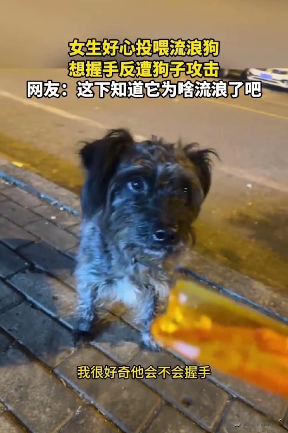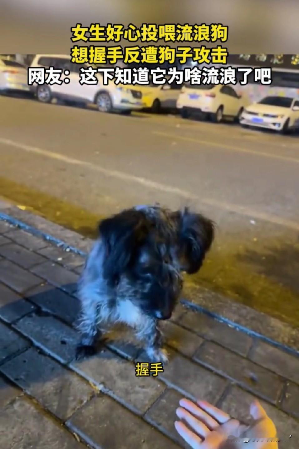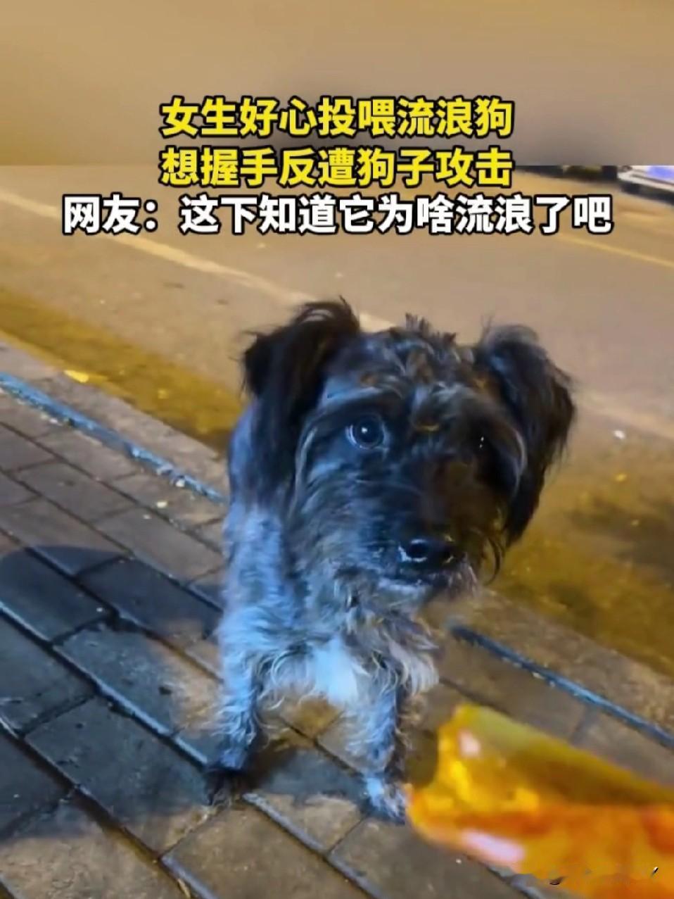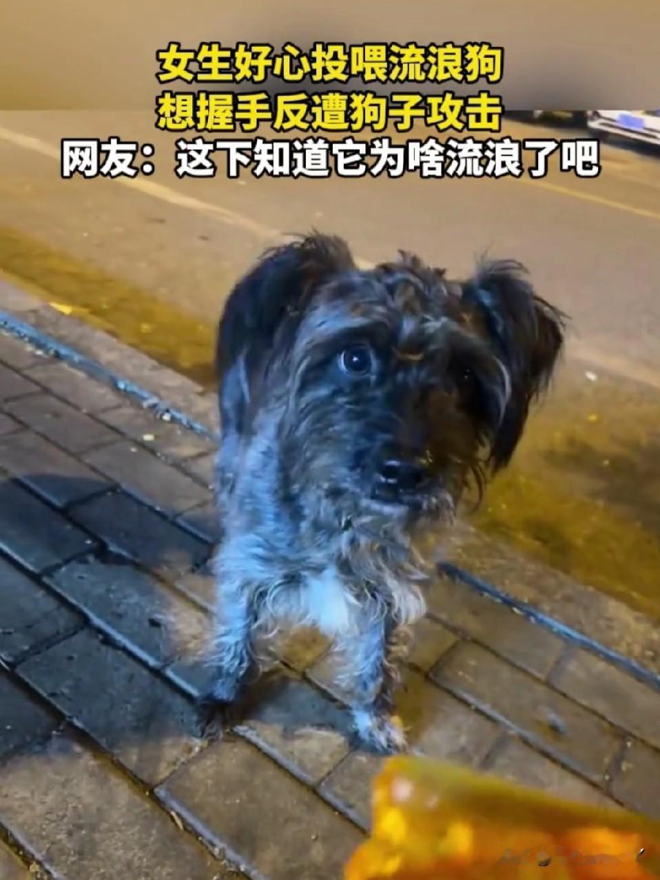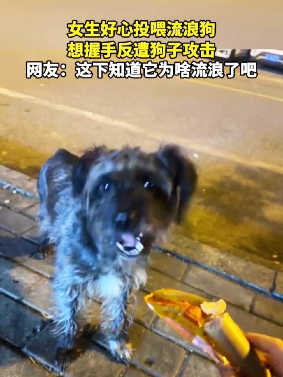 这事得给所有人提了个醒:流浪狗长期漂泊,极度缺乏安全感,对人类的戒备心极强,贸然与它肢体接触,很容易引发其应激攻击。 爱心投喂是有技巧的:把食物放地上,后退两米,不要伸手去抚摸;仔细观察它的状态,如果尾巴下垂、耳朵贴头就别靠近;也可以在固定地点投喂,逐步建立信任感。 如果不小心被咬伤,一定要及时就医打疫苗,所谓“狗狗会内疚”的说法纯属谬论。 在善待毛孩子的同时,我们更要爱护好自己 ,心怀善意,也要心存敬畏! 流浪狗