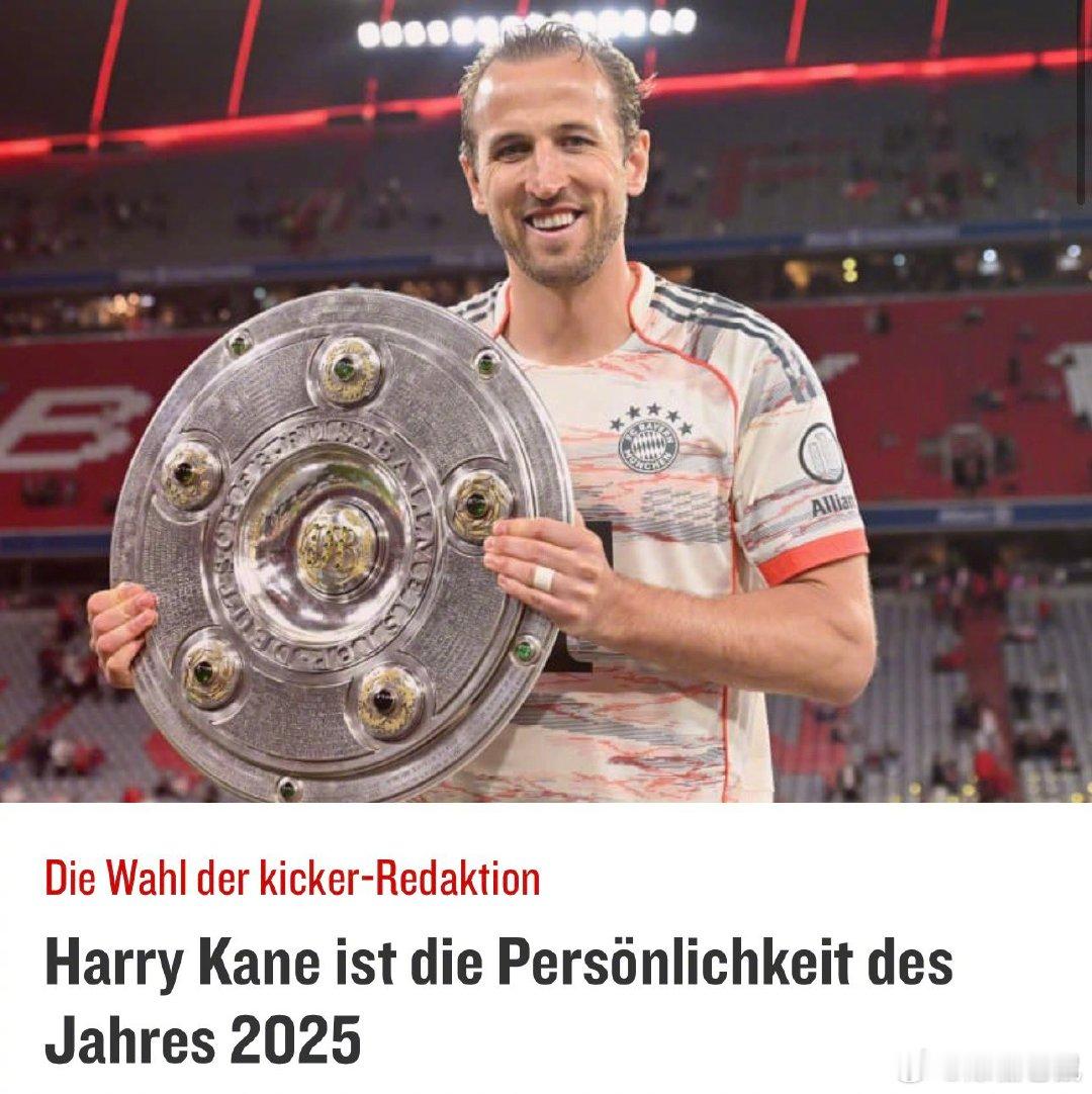 【官方】拜仁前锋凯恩当选《踢球者》2025年度人物,他在2025年获得了职业生涯第一个联赛冠军,很有希望实现德甲金靴两连霸。德甲
