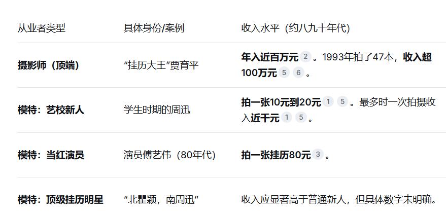 这是1987年的挂历,八九十年代几乎家家都有一本挂历。挂历上的这些人,在当时那个年代的收入是很高的了。 就拿周迅来说,在她还是学生的时候,还属于是“挂历新人”的时候,她拍一张挂历的收入是10元。 如果是当红演员拍挂历,收入更高,比如,当时凭借着封神榜里妲己这个角色风靡全国的傅艺伟。 她那时候拍一张挂历就可以赚85元,而她当时当演员的工资一个月才45元。 后来,周迅和瞿颖成为挂历这个行业的头部,有着“北瞿颖,南周迅”的称呼。 当时家家户户必备挂历,尤其是美女挂历更是风靡。 到90年代初的时候,一本挂历定价四五十元,印数可达30万到50万册,出版社的年利润高的可达800万元,甚至还引发了“挂历大战”。 挂历也曾作为单位采购的职工福利,也保证了稳定的巨额销量,是行业暴利的基础。 还是学生的周迅,凭借着拍挂历就支付了学费和大部分生活费。