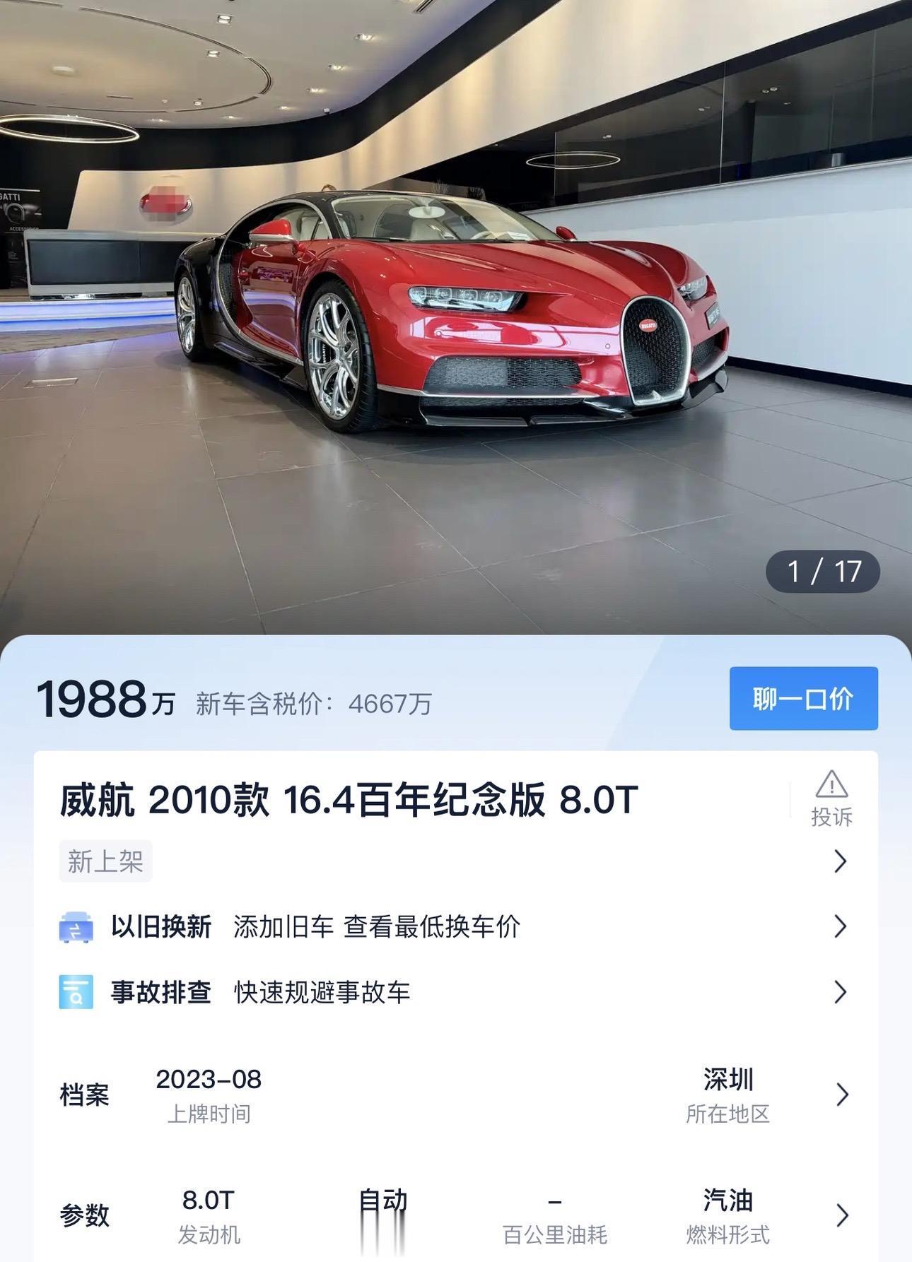 目前大陆 已有8台布加迪赤龙