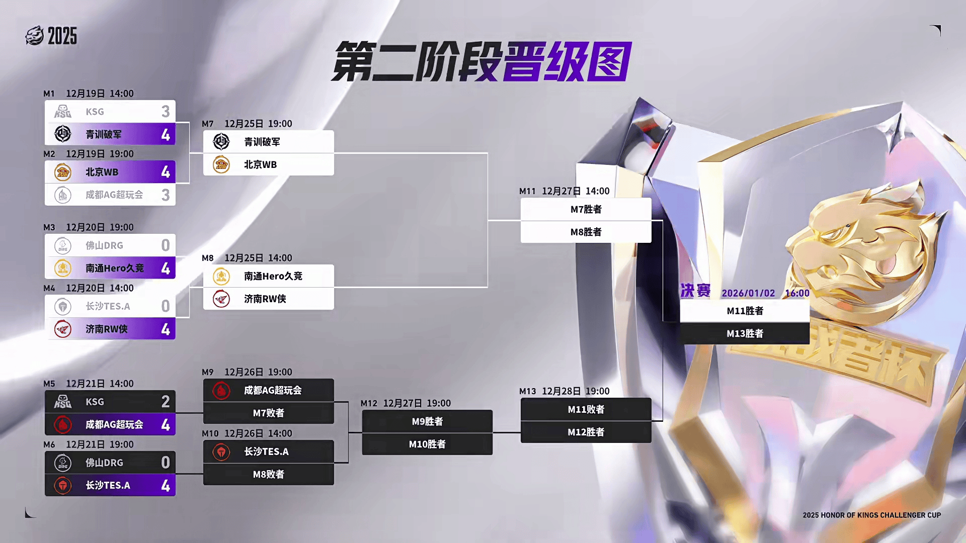 最新第二阶段晋级图见图一,12月25日14:00,两场胜者组BO7比赛等你来看,让我们一起期待