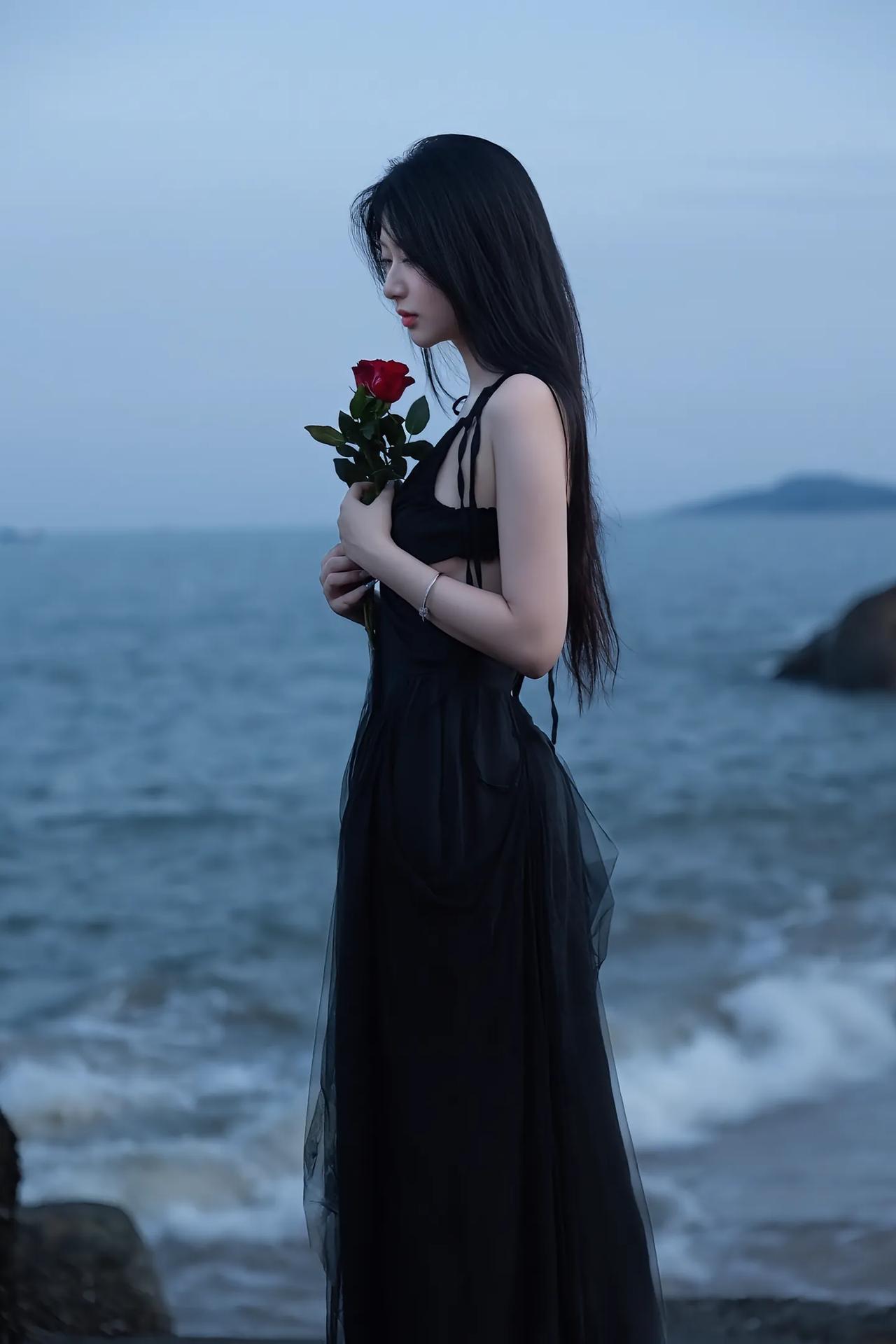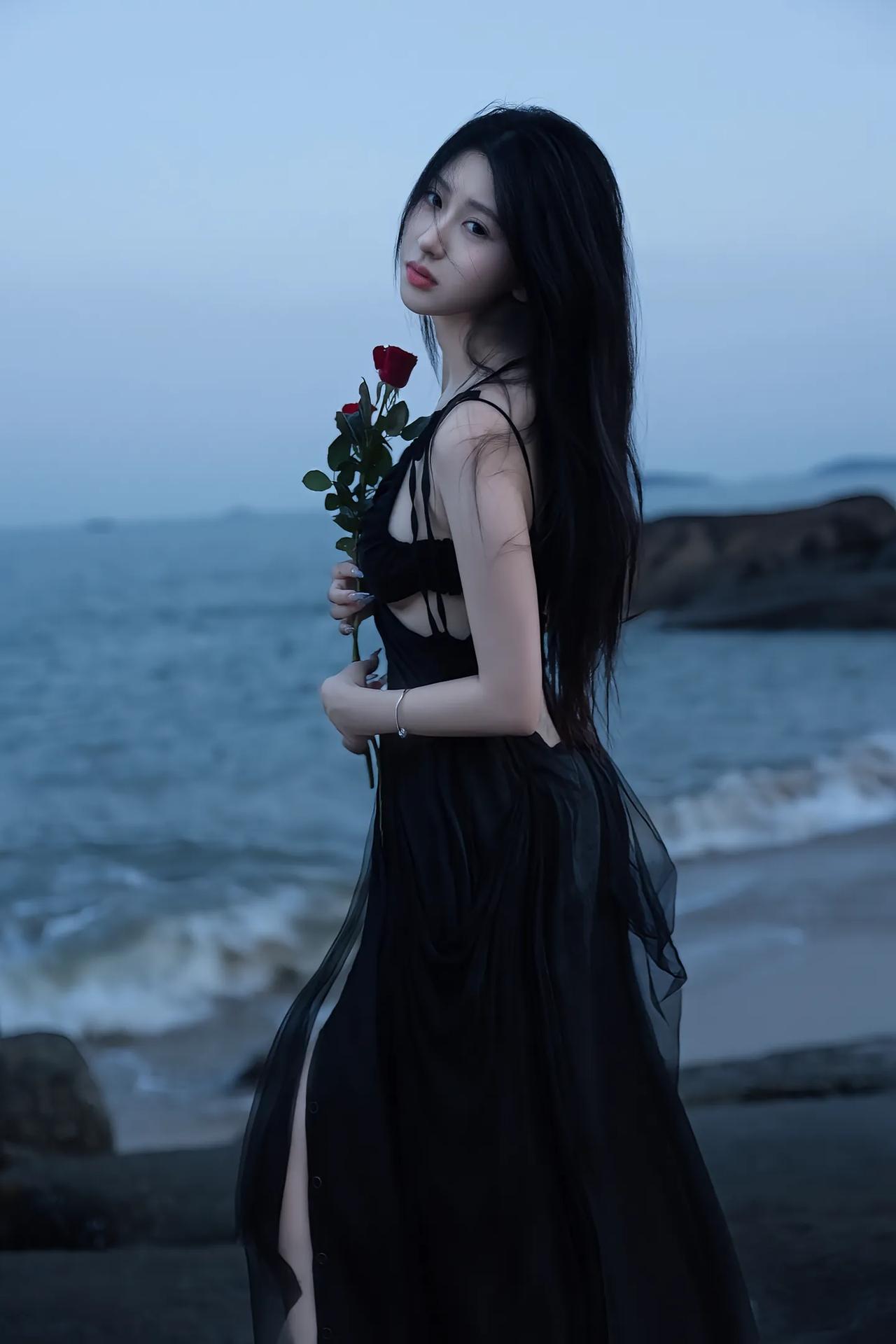 黑裙红玫瑰,优雅与野性的碰撞