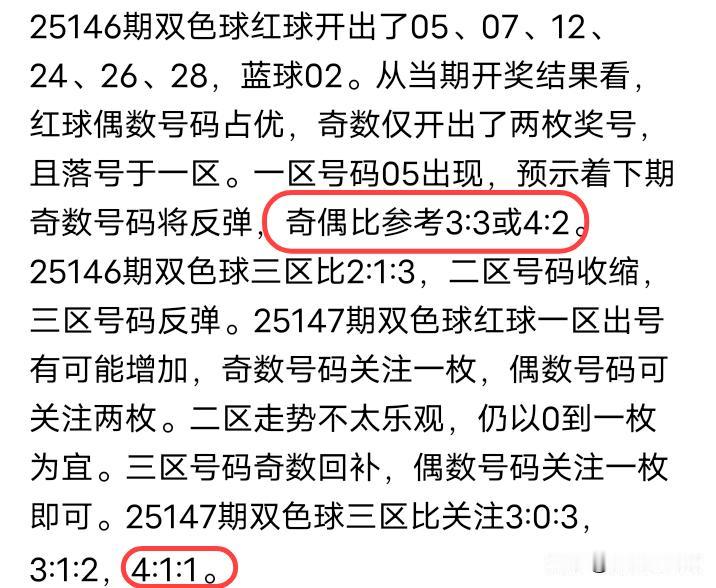 双色球25147期开奖结果出来了 25147期双色球红球开出了01、03、05、08、22、33,蓝球08。 当期开奖结果三区比4:1:1,和分析的三区比吻合。大家都以为二区回补,二区还是开出了一枚奖号。 25147期双色球红球胆码看好27没有出,下期继续关注27。 本期冷号06、16、19、21没有出号,根据二区近两期出号情况,小尾数号码分别开出了一个12和22,下期关注大尾数号码16、17、18、19中落号一枚。 25147期双色球红球仍然没有连号开出,但是重号开出了05,05开出后,下期双色球红球奇偶比4:2或3:3,本期05再次开出,下期奇偶比继续关注4:2或3:3。 25147期双色球重号开出了05,下期重号关注01、22中落号。由于22号的开出,下期一区和二区仍然是重点关注区域。 25147期双色球蓝球开出了2路号08,下期排除2路号蓝球,排除02、04、06、08。 以上是本期开奖结果的回顾及下期红球简单的分析,个人观点,仅供参考。