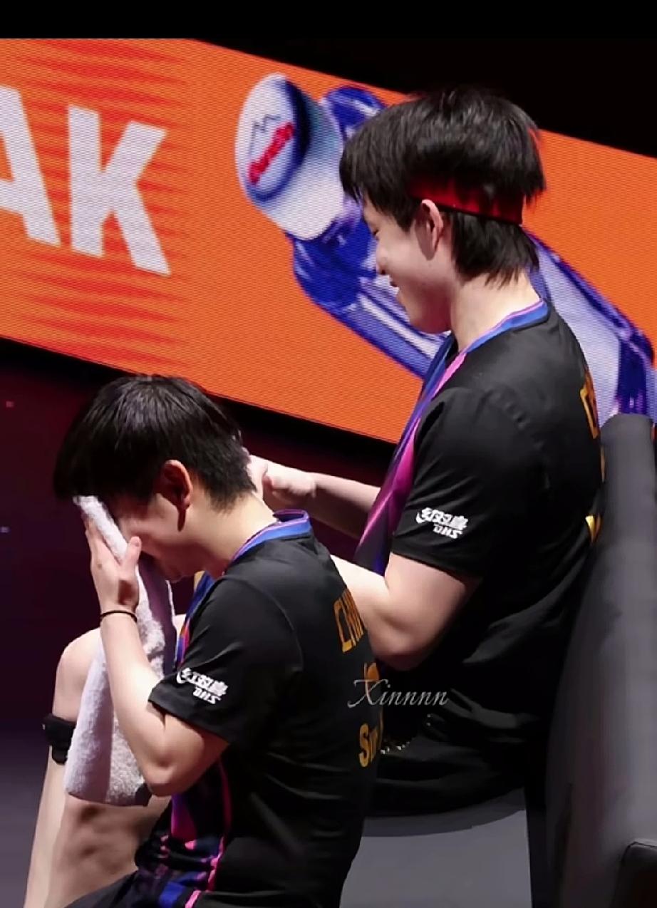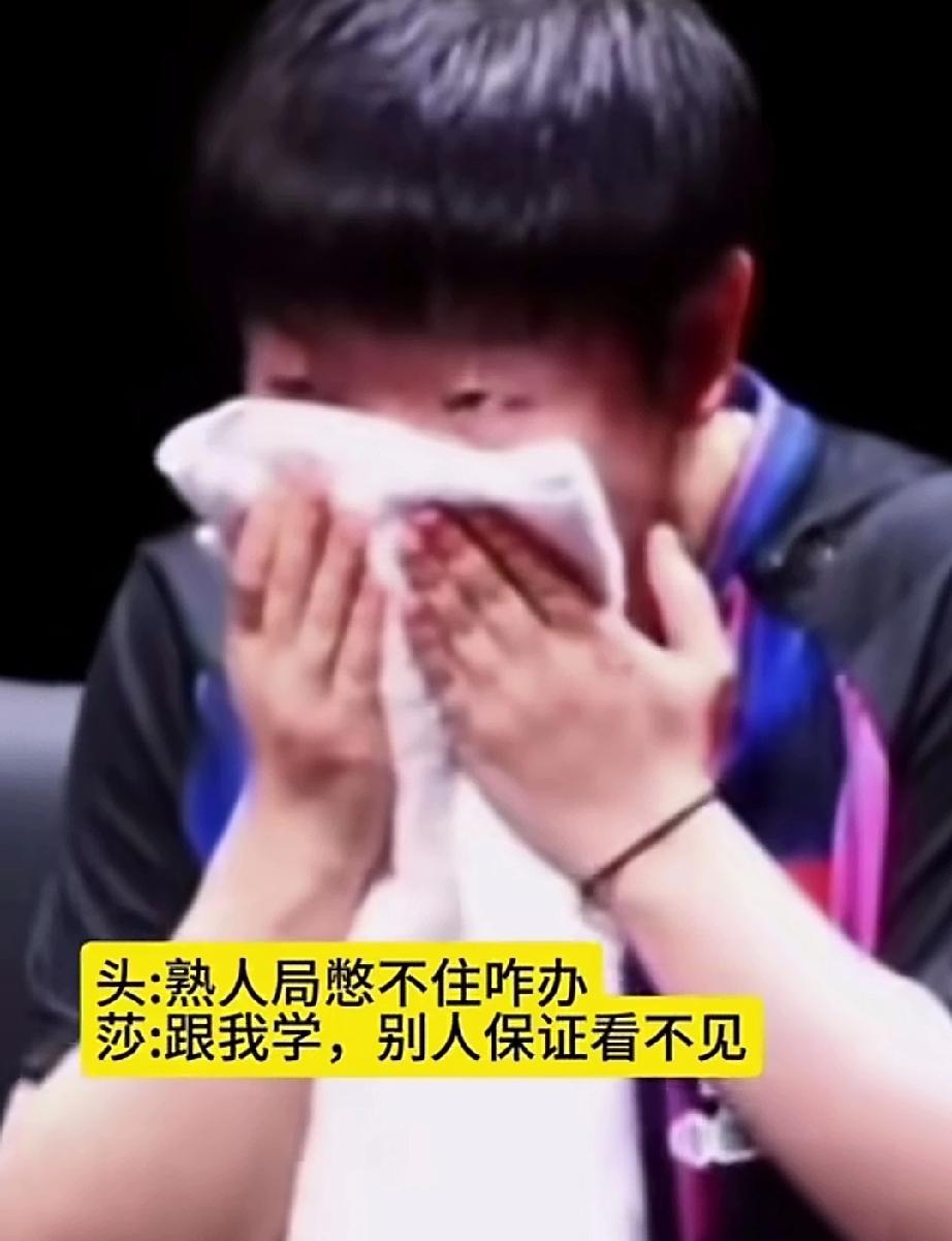 莎莎控制不住的笑,拿毛巾盖住脸都着不住! 香港WTT混双比赛莎头对小石头蒯曼的比赛真是欢乐多多。 四个人坐着只要对视就想笑,莎莎拿着毛巾捂住脸都控制不住,以为盖住了脸别人都看不到她的笑,谁知道毛巾太小,哈哈哈。 对面的大丫头蒯曼也是藏不事的样子,嘴巴就没合拢过。 这内战真是以赛代练,轻松愉快。 也希望小石头和蒯曼能配的更好,早日比肩莎头组合,加油!