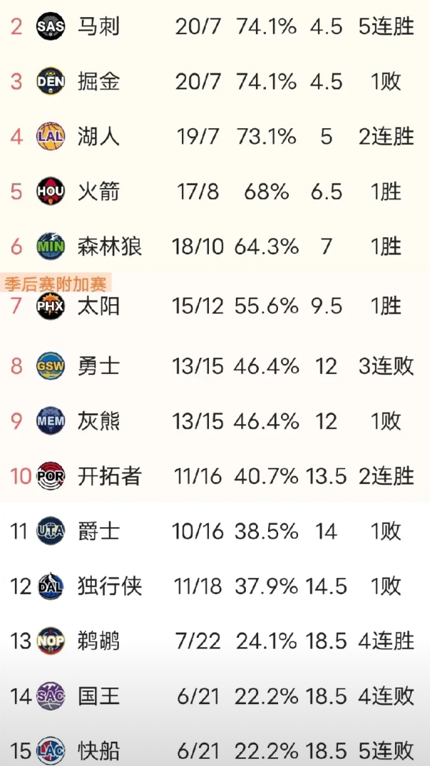恭喜快船!正式获得西部倒数第一的位置。