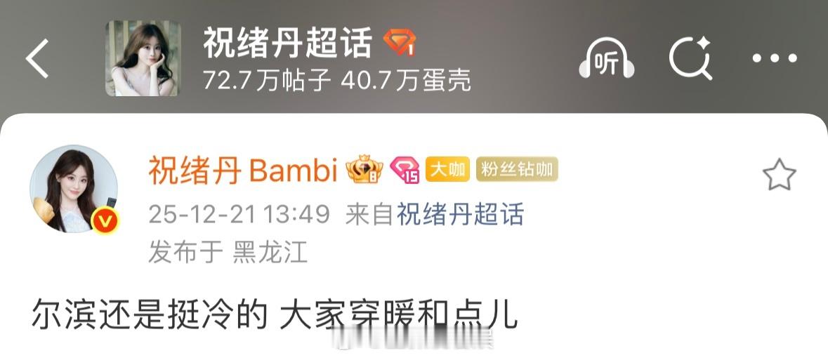 祝绪丹说尔滨还是挺冷的 这个就这样暖心!文案直播的时候就说“尔滨还是挺冷的”,视频直播更是直接被冻掉线了,这闭环谁笑了!可能尔滨还是太权威了,祝祝来我怀里会暖和点😽