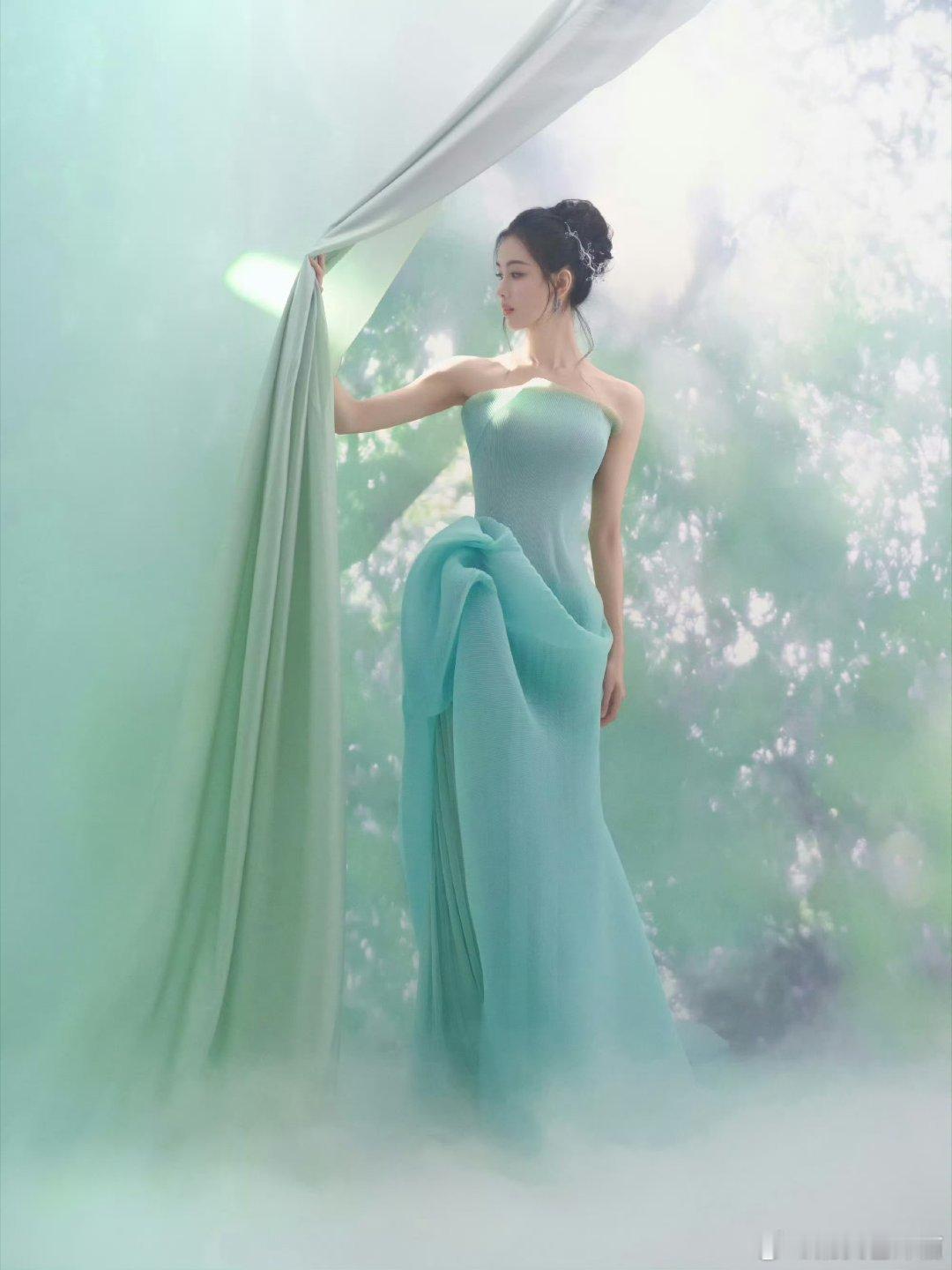 陈都灵星光大赏第二套纯神女来着绿色眼影更显精灵