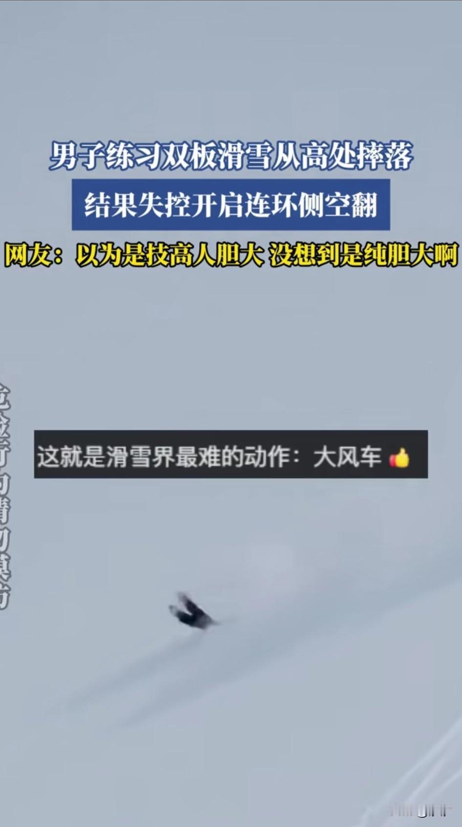 男子看到他人滑雪非常帅气, 于是自己也去练习滑雪, 刚开始几次还算顺利, 于是他就大胆了起来, 一个俯冲加速, 直接腾空跃起, 然后在空中翻了个跟头, 把周围的人都羡慕坏了, 然而接下来的一幕, 就看到人心惊肉跳, 只见他翻滚之后, 人直接失去了平衡, 于是开始在雪地里面, 表演起了大风车, 本来以为他是艺高人胆大, 原来是滑雪用力过猛翻车了, 网友都表示这是滑雪中最难的动作, 大家对于男子表演雪地大风车怎么看? 滑雪 滑雪锻炼 运动员滑雪 滑雪男 滑雪男生
