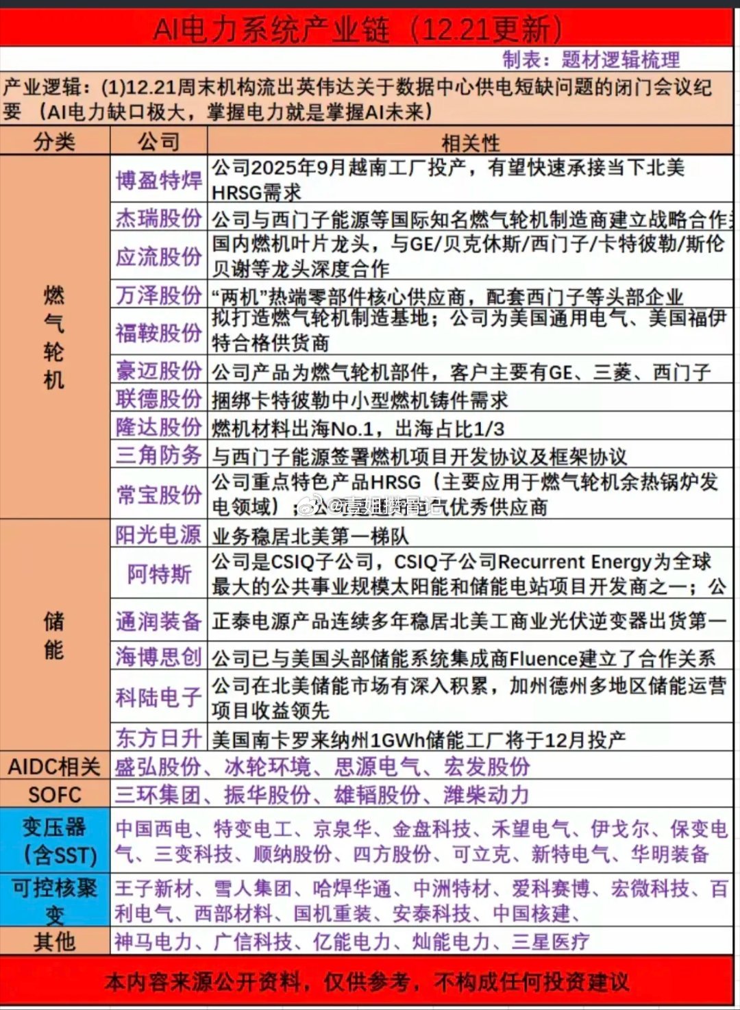 AI电力系统产业链!周末机构流出英伟达关于数据中心供电短缺问题的闭门会议纪要。AI电力缺口巨大。相关核心龙头受益股:1.燃气轮机2.储能3.SST固态变压器4.可控核聚变