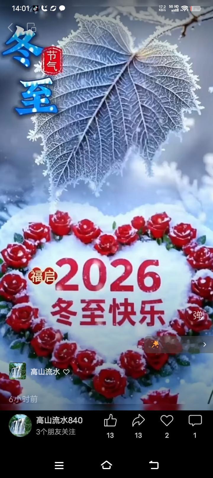 冬至快乐,2026年福气满满!🌨️🌹冬至到来,愿你幸福安康!冬至节气 去岁冬