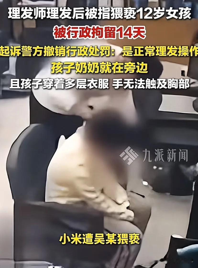 “冤不冤?”山东济南,38岁理发师给12岁女孩理完发。结果,第2天,女孩奶奶找上门,称理发师理发过程中摸了女孩的胸部。虽然理发师当场便调取了监控,以证清白,怎料,女孩奶奶还是报了警。报警后虽然理发师依旧否认,但还是被警方拘留了14天。理发师喊冤,一纸诉状将警方告上法庭。 济南街头巷尾的老理发店里,藏着不少邻里间的熟络和信任,可38岁的理发师老吴怎么也想不到,自己干了快二十年的手艺活,会因为给一个12岁女孩剪头发,把自己送进拘留所,还惹上了一场官司。 那天傍晚,夕阳的光线刚擦过理发店的玻璃窗,店里的老风扇慢悠悠转着,一位六旬奶奶牵着穿粉色校服的孙女推门进来,说要给孩子剪个清爽的学生头。 老吴笑着应下,搬来矮凳让女孩坐好,围上印着卡通图案的围布,手里的剪刀咔嚓咔嚓动起来。女孩很乖,全程低着头玩手机,奶奶就坐在旁边的长椅上,眼睛时不时瞟过来,还跟老吴唠了几句家常,说孩子头发长得快,一个月就得剪一次。 剪完头发,老吴像往常一样,拿起软毛巾给女孩清理后颈和衣领里的碎发。女孩的卫衣领口有点紧,碎发都沾在脖子上,老吴就轻轻拉起一点领口,用毛巾顺着脖颈往下擦。 这个动作他做了无数次,尤其是给小孩子理发,怕碎发扎脖子,都会这么处理,全程不过十几秒,奶奶就在旁边看着,没说一句不妥。 女孩和奶奶付了钱,安安静静地走了,老吴收拾好工具,还跟隔壁店的老板打趣说今天生意不错。 谁能想到,第二天一大早,昨天那位奶奶就带着社区的人找上门来,一进门就拍着桌子喊,说老吴理发的时候摸了她孙女的胸部,孩子回家哭了半宿,说感觉特别不舒服。 老吴当时就懵了,自己清清白白干了这么多年,怎么可能干这种龌龊事。他赶紧跑到吧台,调出昨天傍晚的监控录像,拉着奶奶和社区工作人员一起看。 监控画面里,能清楚看到老吴站在女孩身后剪头发,清理碎发时确实拉了女孩的领口,可因为角度问题,摄像头对着的是女孩的后背,老吴的手被女孩的肩膀和衣领挡住了,只能看到手腕的动作,根本看不清手指到底碰到了哪里。 老吴反复解释,说自己就是擦碎发,女孩穿了两层衣服,秋衣加卫衣,根本不可能碰到不该碰的地方。可奶奶根本不听,一口咬定是老吴心怀不轨,当场掏出手机报了警。 警察很快就来了,把监控录像拷贝回去,又分别问了老吴和奶奶的话。老吴拍着胸脯保证自己没做亏心事,可女孩的陈述和奶奶的指控,加上监控画面里那个模糊的手部动作,让他百口莫辩。 没过多久,警方的行政处罚决定书就下来了,认定老吴构成猥亵,处以行政拘留14天的处罚。 那14天,对老吴来说简直是度日如年。走出拘留所的那天,天阴沉沉的,他看着熟悉的街道,却觉得浑身发冷。理发店因为这事早就关了门,玻璃门上贴着转让的纸条,路过的街坊邻居指指点点,看他的眼神里满是异样。 以前常来理发的老顾客,也都绕着路走,他在这个片区积攒了二十年的口碑,一夜之间碎得稀碎。 老吴越想越憋屈,自己明明是按行业规矩做事,怎么就成了罪犯?他不甘心,回家后翻出自己的理发资格证,又找了几个同行作证,说清理碎发时提拉领口是常规操作,然后一纸诉状把作出处罚的警方告上了法庭,要求撤销行政处罚,还自己一个清白。 法庭上,双方吵得不可开交。警方拿出经过技术处理的监控分帧画面,指出老吴的手腕有明显的翻转动作,怀疑他借着清理碎发的名义触碰女孩身体; 老吴则拿出自己给无数孩子理发的记录,还有同行们的证言,说这个动作是行业通用的操作,监控角度问题导致看不清,不能凭猜测定罪。 这件事很快就在济南的理发圈传开了,不少同行都觉得后怕,现在给未成年女孩理发,要么全程让家长站在旁边盯着,要么干脆用吸尘器吸碎发,再也不敢用手去提拉领口。 大家都在议论,老吴到底冤不冤?一边是未成年人的权益不容侵犯,任何可疑行为都不能放过;另一边是理发师的常规操作,总不能因为怕被误会,就连正常服务都不敢做了。 直到现在,这场官司还没有最终的结果,老吴每天都会去法院门口转转,盼着能有一个公正的判决,盼着自己能重新挺起腰杆,再开一家属于自己的理发店。 对此,你们有什么看法,欢迎评论留言~