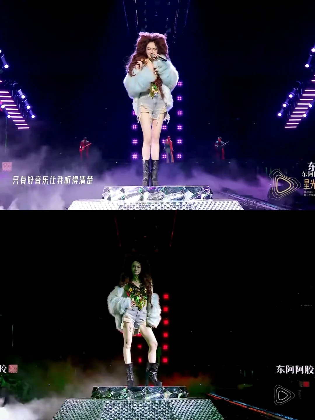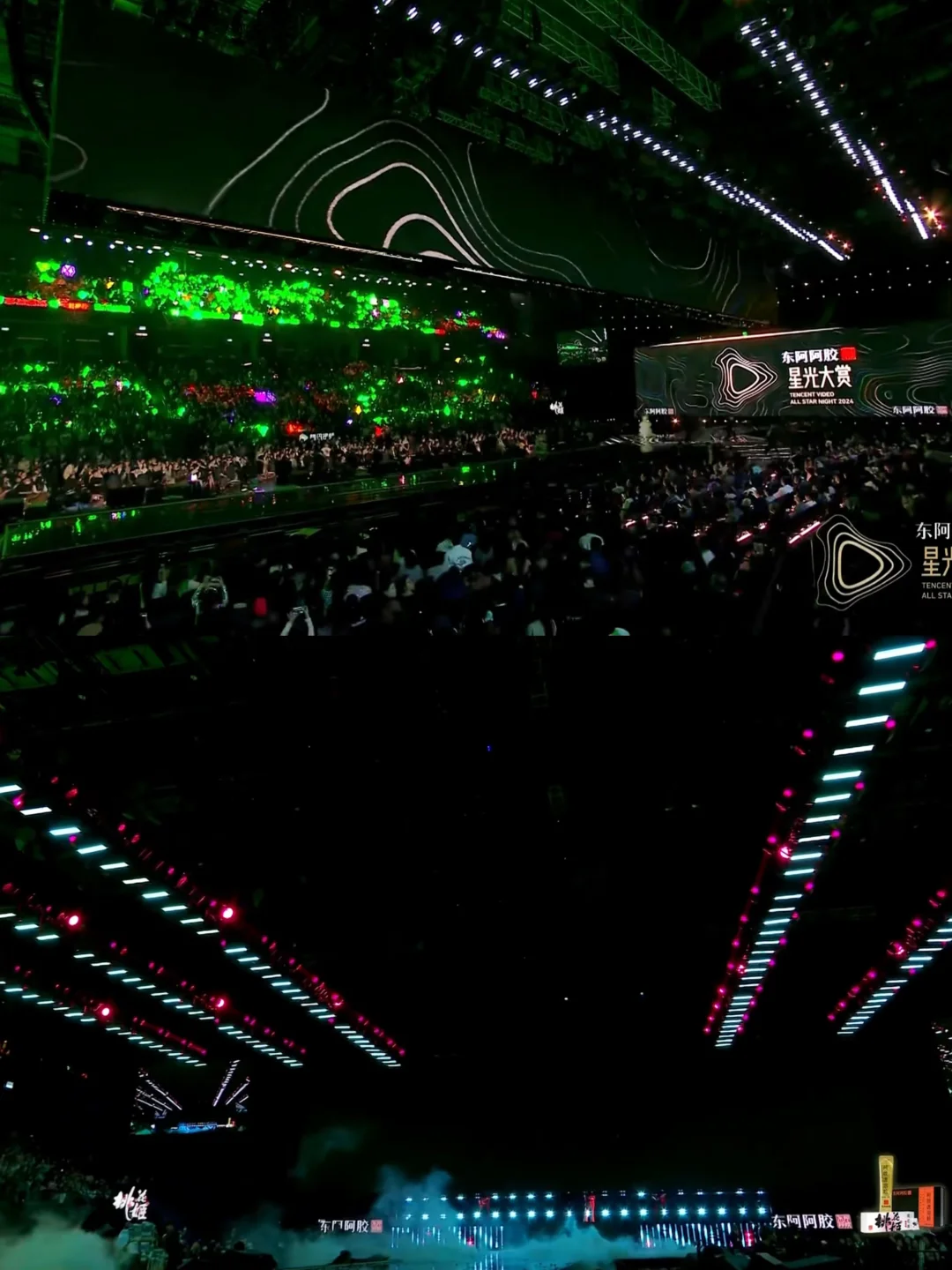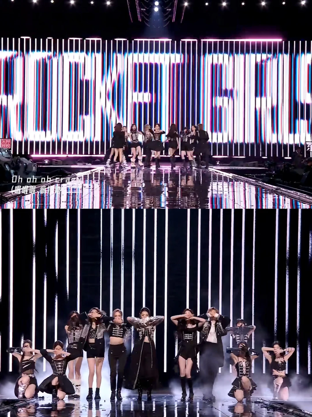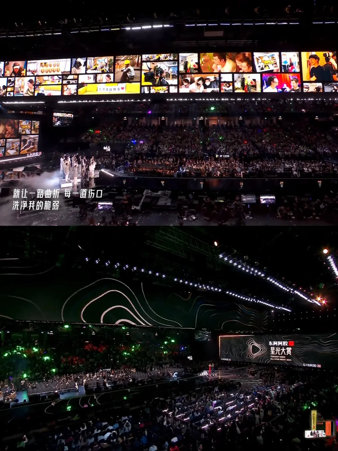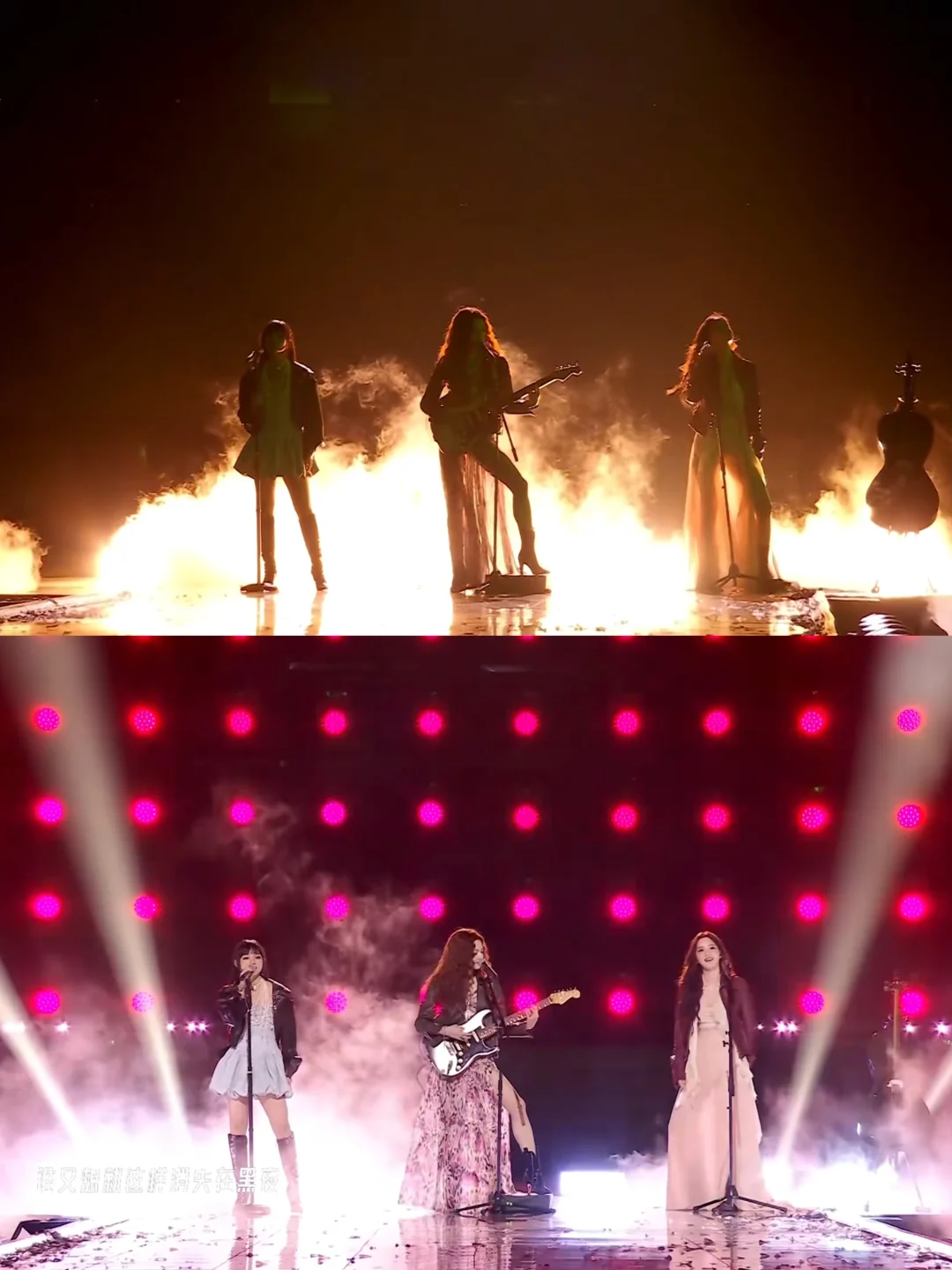 星光大赏的艺人们在梯型中心舞台定位与亮相,舞台上的天屏与主屏展现闪电元素的闪烁光芒律动,增加了舞台视觉层次感,也增加了舞台的韵律美感和节奏动感的能量和张力,再加上音乐的旋律融为一体。镜头有时会给到中心艺人的闭眼特写,比如艺人Ending Pose表演结束后马上灯光收暗,镜头立即给到主屏幕中的火箭素材闪动,这种巧妙的设计风格与配合使音乐、灯光和视觉素材三者之间形成了完美的同步效果,串曲部分配合了火焰特效,营造热血向上的氛围,既放大了视觉冲击又与歌曲的主题相呼应。