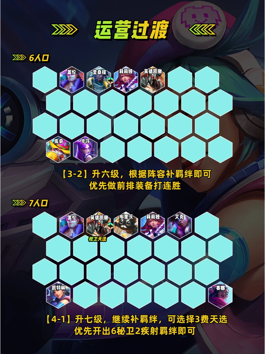 稳定上大师的阵容来啦!速速来学~ 开局拿到任意秘术护卫天选搭配射手过渡即可 前期装备直接合!有啥给啥~后期可以走拉九路线