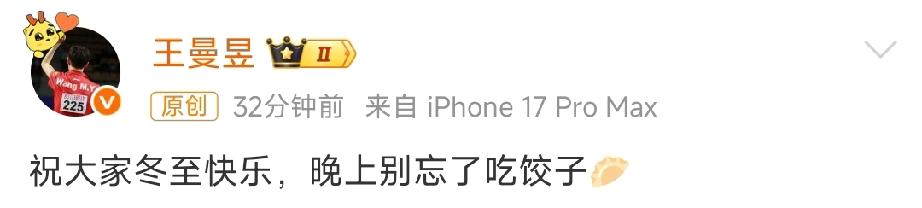 乒乓球运动员林诗栋社媒更新:“祝大家冬至快乐,别忘了吃饺子,吃汤圆!” 小石头又搞笑了!老实说!这文案是不是学的曼昱姐,曼昱姐北方人,冬至只吃饺子,小石头南方人,没忘了加汤圆! 私下的林诗栋其实一直都是搞笑男吧!会把吃完的虾皮套在手指上当美甲! 今年20岁,当过世界第一,现在世界第二,经受考验,也一直在奋斗中,最好的年龄,继续奋发拼搏! 像曼昱姐和偶像樊振东一样,总有一天,林诗栋也会登上奥运大舞台发光发热成为最强!