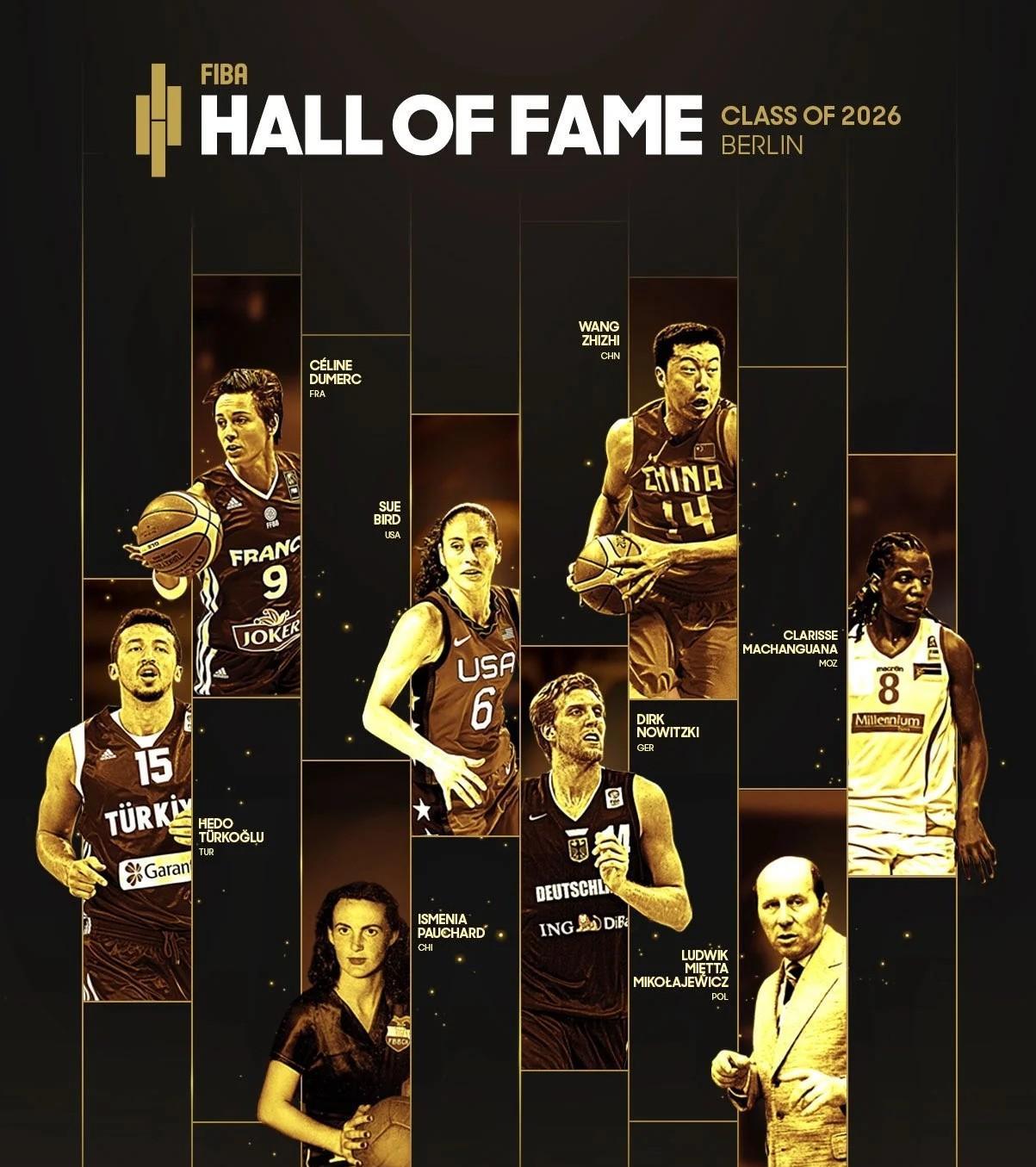 恭喜!王治郅!!! 国际篮联日前发布消息,王治郅以及他在NBA小牛队友诺维茨基等人正式入选2026国际篮联名人堂,王治郅也是继牟作云、郑海霞、姚明、苗立杰之后第五位入选的中国篮球人。 国际篮联对于王治郅的介绍:1999年,王治郅在NBA选秀中被达拉斯小牛队选中,后来成为首位登陆NBA的中国球员。 他曾四次夺得亚洲杯冠军(1995年、1999年、2001年和2011年)。这位极具爆发力的得分手还参加了四届奥运会(1996年、2000年、2008年、2012年)和两届篮球世界杯(2006年、2010年)。