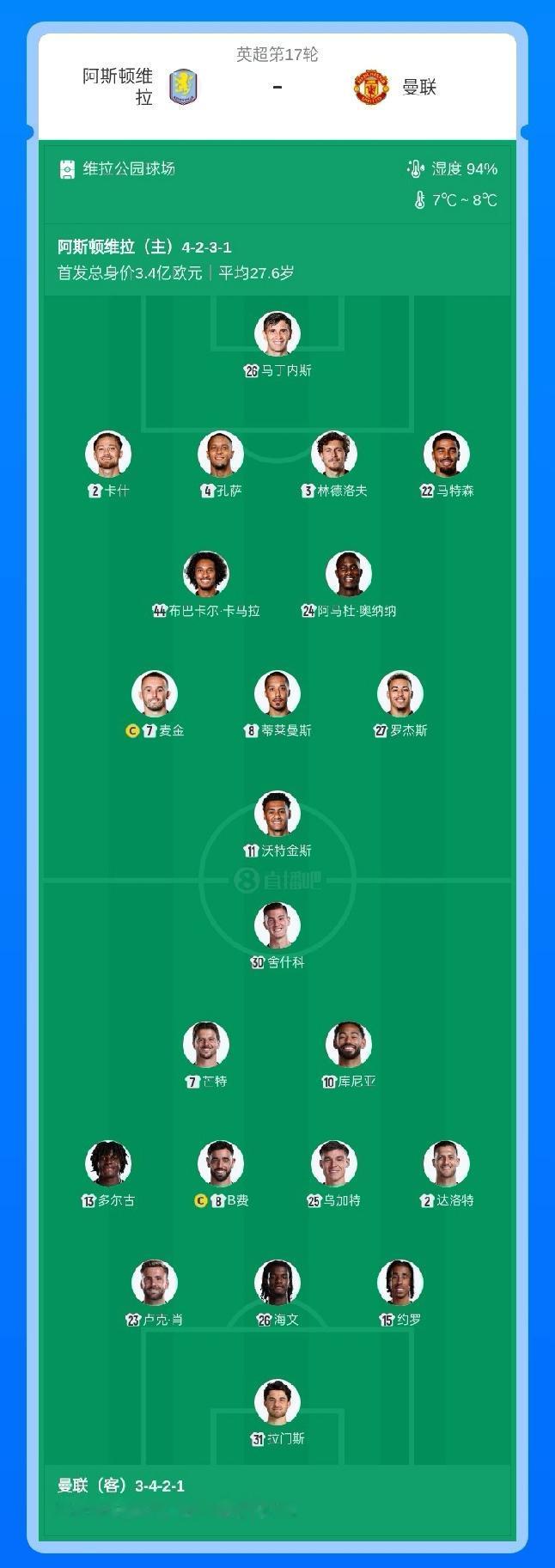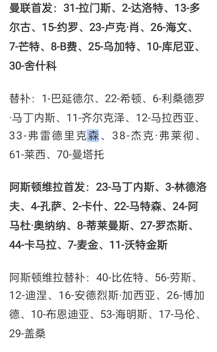 英超 曼联vs维拉首发:舍什科、库尼亚首发,B费、芒特、乌加特先发,梅努缺席 12月21日 英超第17轮,阿斯顿维拉主场迎战曼联,赛前首发名单公布。【曼联方面,舍什科,芒特、库尼亚、B费、卢克·肖悉数首发,梅努缺席