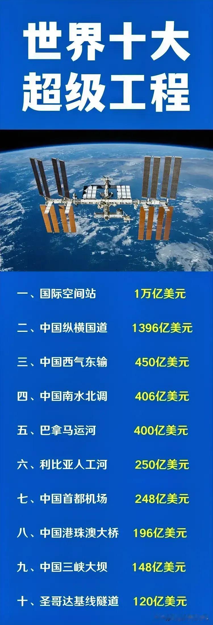 看见世界十大超级工程,那是满满的自豪感。 这就是集中力量办大事的超级引擎展现出来的动力。 无论是南水北调,还是西气东输,都是国家爱民的表现,我本人身处北方,现在吃的就是南水北调的水。 这些超级工程某种层面上来说也是工匠精神的传承,从古代万里长城到现代超级工程。 我们骨子里,就是有那种基建之魂。