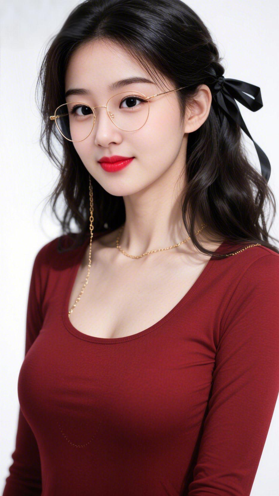 《红衫与清光》 午后的光像薄纱轻落,漫过她发梢那截黑丝带。酒红衫子裹着舒展的温柔,唇上胭脂是檐角初绽的花,清艳得恰好。 金丝镜架垂着细链,随呼吸轻晃时,像把风捻成了软线。她抬眼那刻,眼波是浸了暖的湖,连周遭的空气都慢下来——好看从不是喧嚣的夺目,是妥帖的舒展,是寻常日子里撞进眼底的、安静的甜。 这世上总有这样的时刻:不用声势浩大,只一抹颜色、一点光影,就把庸常日子织成了浅淡的诗。 温柔生活感 日常轻甜瞬间