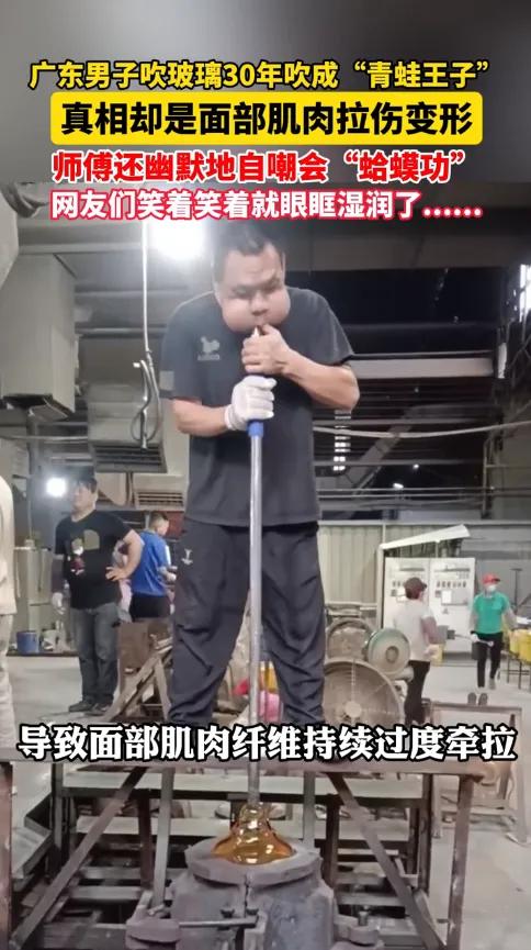 广东玻璃厂的张先生吹玻璃30年,日均吹二三百个,长期重复鼓腮动作致使面部肌肉拉伤、腮帮变形,被工友调侃练成“蛤蟆功”。车间环境酷热,工作强度极大,他因家庭重担咬牙坚持。如今孩子毕业、压力减轻,他仍坚守岗位,盼攒钱后回乡享福,其经历引发网友对普通劳动者的共鸣。 网友评论: 为啥不用空压机代替人工吹啊?效率高还不伤身体,真的想不通。 机器吹出来的玻璃,哪有人工吹的那种细腻手感和独特弧度啊,老手艺还是有讲究的。 不是不想用机器,大概率是小厂没那么多钱更新设备吧,成本摆在那儿呢。 说不定人工吹制的玻璃定价更高,能卖出更好的价钱,这也是老师傅们的饭碗啊。 用机器的话,这些干了几十年的老师傅,又能去哪里找新工作呢?