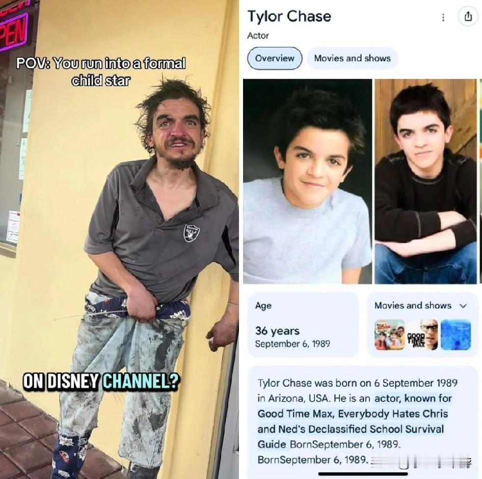 美国前尼克儿童频道童星泰勒·蔡斯被发现无家可归,流浪于加州街头。