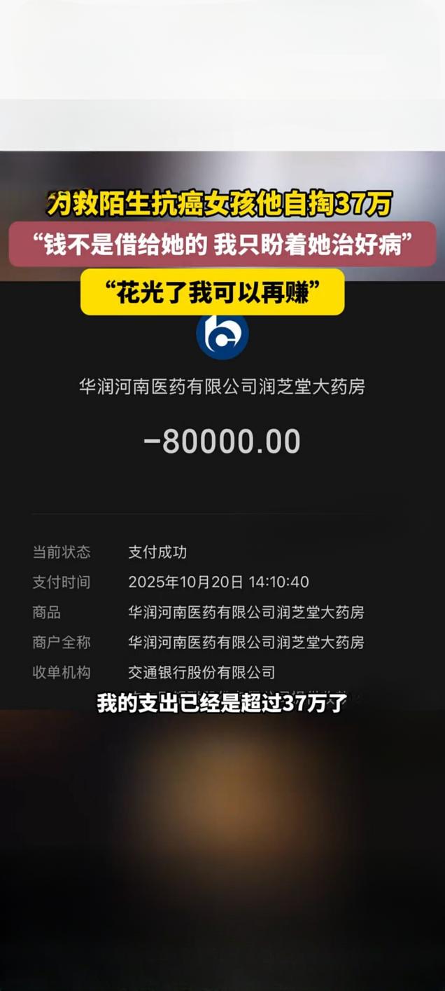暖心大哥自掏37万救助陌生抗癌女孩 坦言“钱花光可再赚” 近日,一则“男子为陌生抗癌女孩豪掷37万”的短视频在快手平台引发热议,相关作品播放量已达10.6万次,网友纷纷为这份跨越陌生的善意点赞。 据悉,被救助女孩不幸罹患癌症,治疗过程耗费巨大,家庭难以承受沉重的医疗负担。素不相识的爱心大哥得知女孩的困境后,毫不犹豫伸出援手,累计自掏37万元用于女孩的治疗。面对他人疑问,大哥朴实回应:“钱不是借给她的,我只盼着她治好病,花光了我可以再赚。”简单的话语背后,是纯粹的善意与担当。 该事件经《都市报道》传播后,迅速触动无数网友。有网友留言:“平凡人的大爱最动人,这份善意给了女孩生的希望”“大哥用行动诠释了‘人间有情’,太让人感动”。目前,女孩仍在接受治疗,爱心大哥的资助为她的康复之路提供了关键支撑,其家属也通过媒体向大哥表达了深切谢意。 在快节奏的都市生活中,这份不图回报的跨界救助传递了满满的社会正能量。爱心大哥的义举不仅为抗癌女孩带去了生的曙光,也唤醒了更多人对弱势群体的关注,让互助友爱的美德在网络空间与现实生活中持续传递。大病捐款 抗癌故事 人间大爱 爱心义举