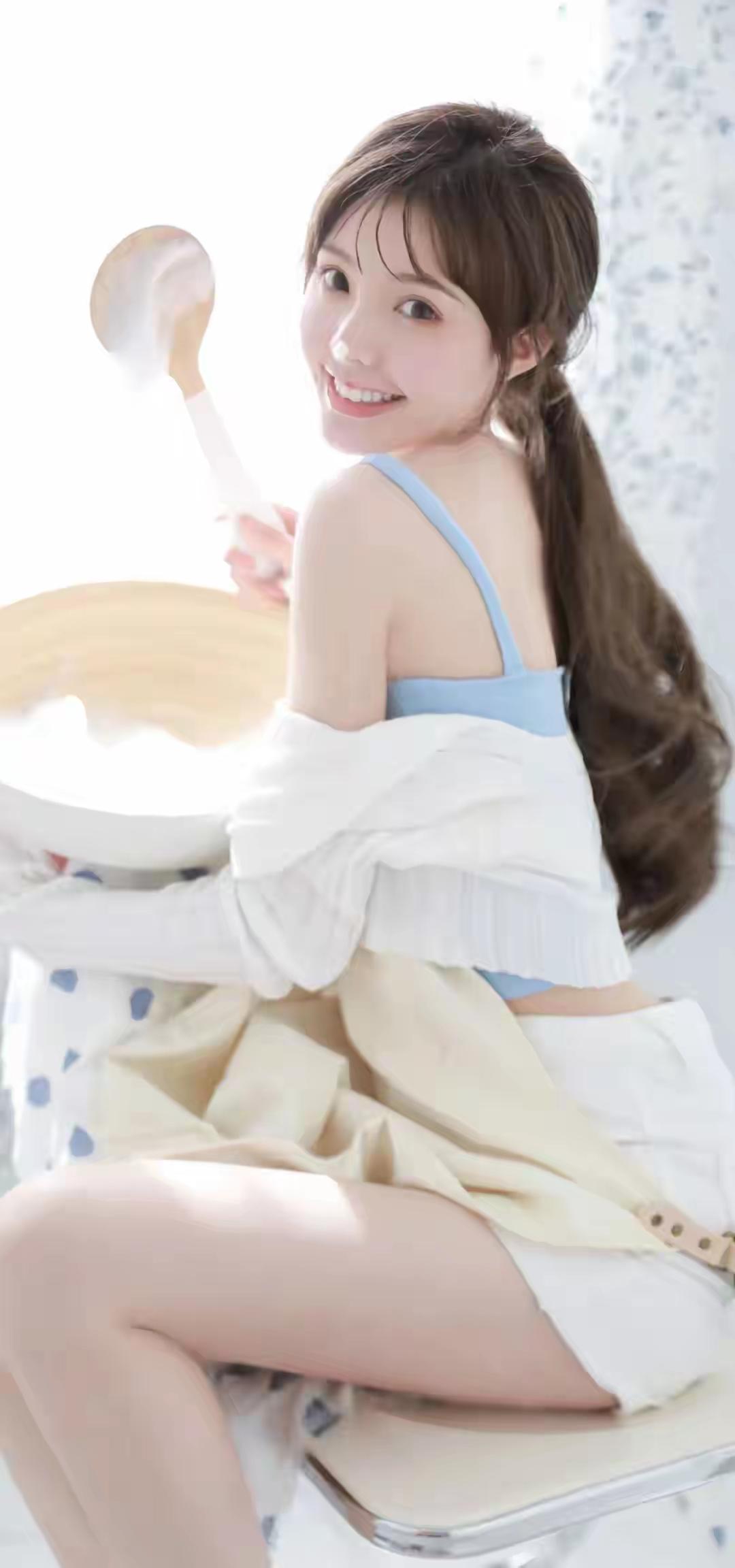 阳光洒进厨房,少女温柔地抱着小熊,温馨又治愈。🌞🧸💕跟女明星学穿搭 女生如