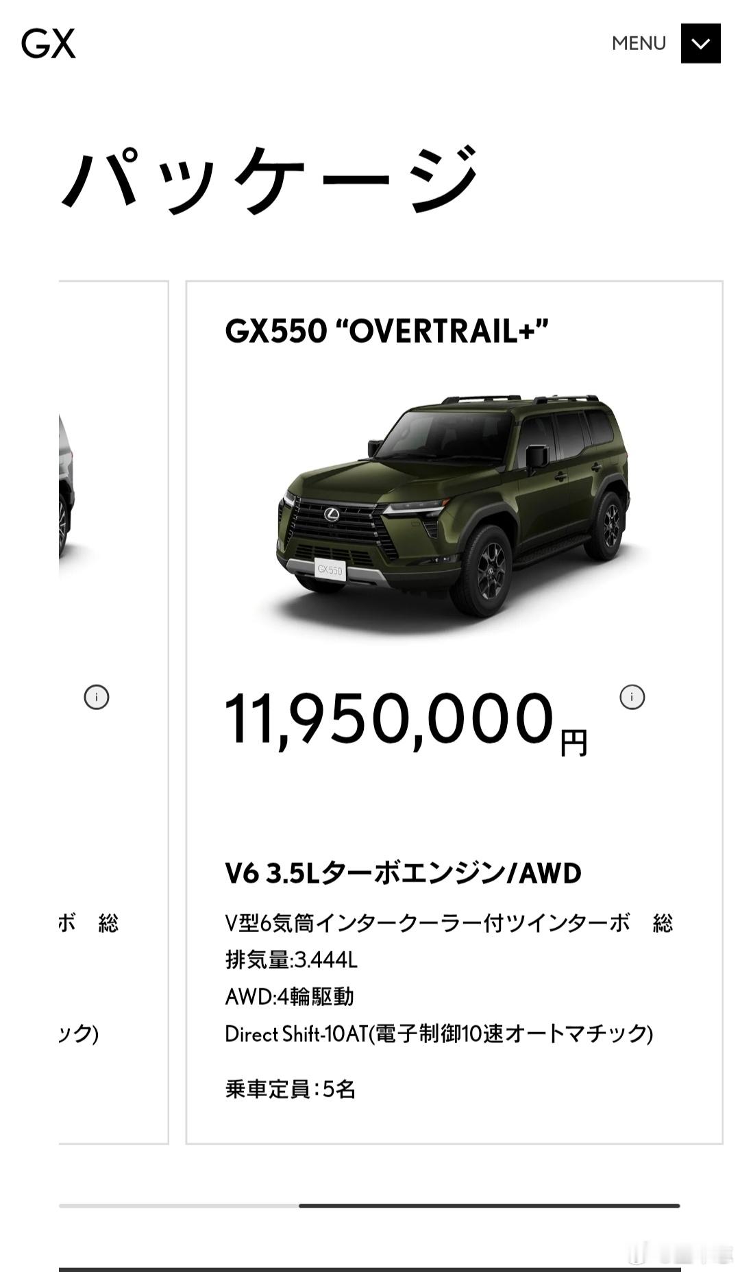 型车街拍雷克萨斯 GX 能见度越来越高了。动力有且只有一个:GX550,也就是 3.5T V6 双涡轮纯燃油。Overtrail+远峰版是 1195 万日元起(53万人民币)。别看丰田在走量车型上主推混动和纯电,但在利润款的豪华车型上他们明白着呢,能六缸就不用混动,能八缸就不用六缸。毕竟在本土市场,缸数往往和买家付费意愿成正比。