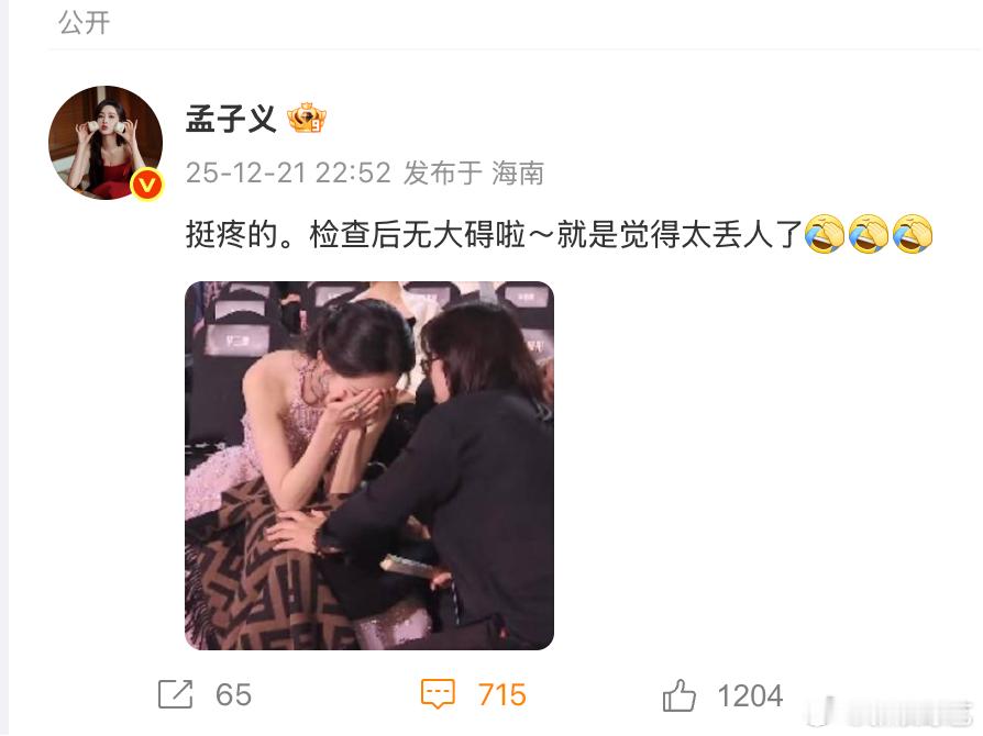 孟子义回应又摔了 今晚星光大赏 上台领奖不小心摔倒,孟姐下台后发博回应摔倒。孟子义摔了