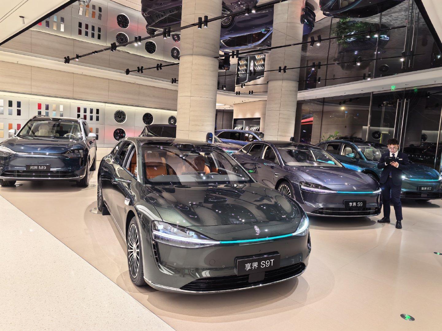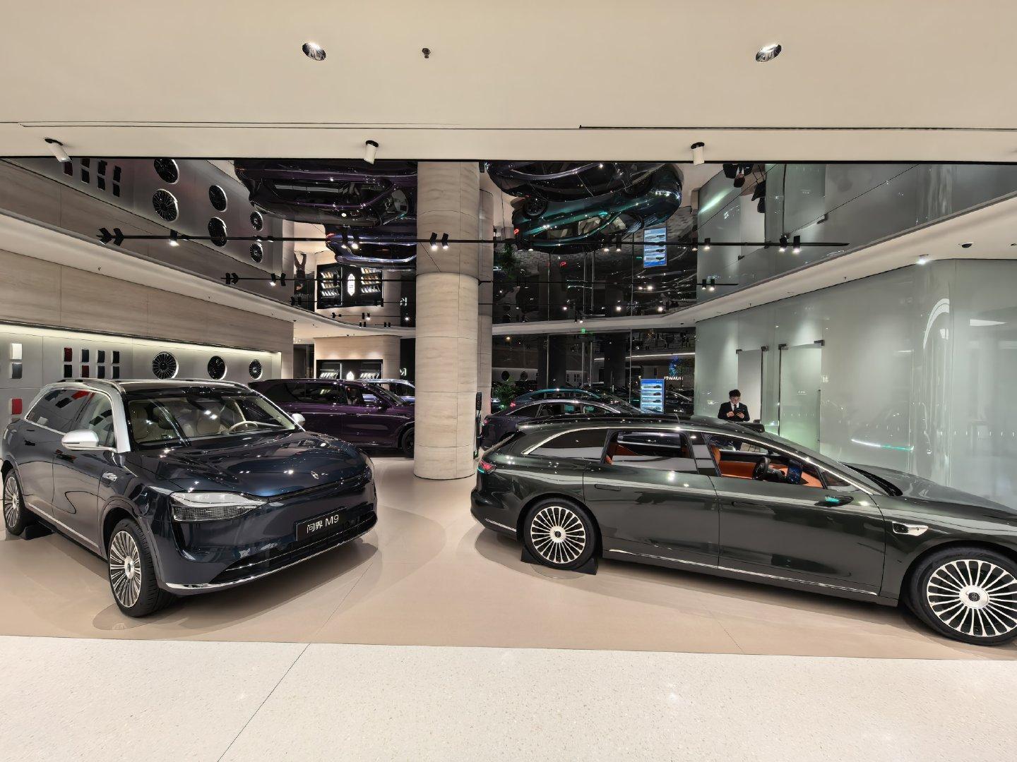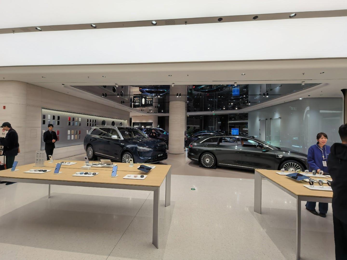 华为店里,真的快摆不下车了。几台车都是挨着放的。明年还有MPV,店面不扩大真不行啊 上海·华为旗舰店(上海前滩太古里)