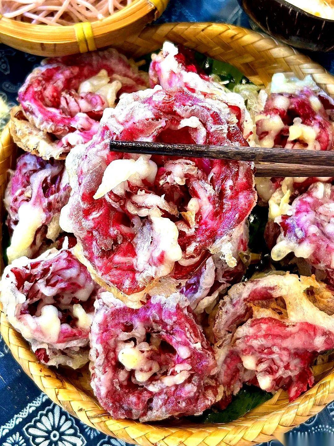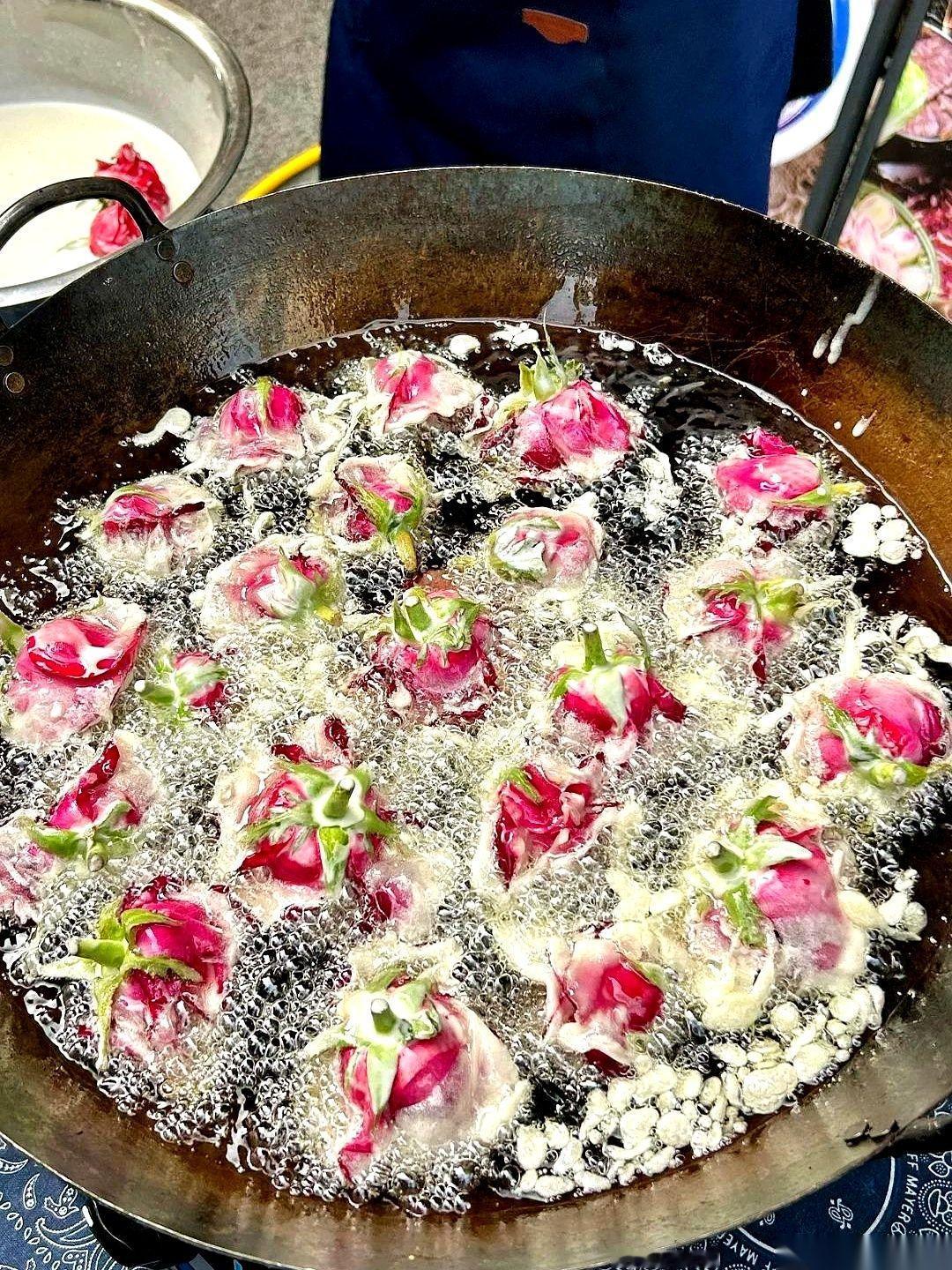 一束玫瑰,直接扔进了油锅。 我跟你说,我当时就站在重庆街头,人都傻了,感觉自己小脑瞬间停止了工作。 旁边我那大学同学还一脸坏笑,“试试?” 试啥啊试! 一个穿着围裙的大叔,面前摆满了娇艳欲滴的玫瑰。我以为是卖花的,结果人家抄起一朵,裹上面糊就往滚油里丢……那个画面,太有冲击力了。 我整个人都不好了。 这什么操作?是我这个广东人没见过世面,还是你们山城人民的浪漫就是这么……朴实无华且下饭? 花,不是用来送对象的吗?怎么就上菜单了? 结果同学告诉我,这是云南那边的特色小吃,炸玫瑰。 行吧,来都来了。 硬着头皮尝了一口。 好家伙! 酥酥脆脆的,满嘴都是清甜的玫瑰香,一点都不腻,居然巨好吃!我承认我刚才声音有点大。 老板看我那一脸没出息的样子,乐了,说这算啥,炸桑叶你吃过没?口感跟天妇罗似的。 我……我彻底词穷了。 你们谁吃过?这世界好吃的玩意儿也太多了吧!