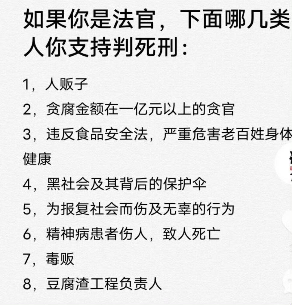 如果你是法官,下面哪几类人你支持判死刑?其实从尊重生命的角度来看,都不应该判极刑。