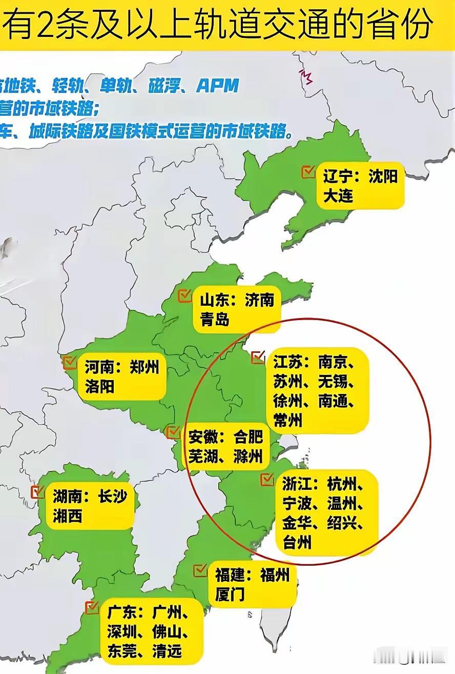 凭什么安徽能拥有3座轨道城市,居然力压山东和福建!原因无他,主要是旁边有南京这个大哥!南京都市圈把芜湖和滁州纳入作为自己的成员,轨道交通也自然覆盖到了这两个城市!作为内陆王者的湖北除了武汉之外,居然只有没有第二座城市。相反的是湖南的湘西州,因为得益于凤凰古城而有磁悬浮轨道。当然一点也不用怀疑,国内有两座轨道城市以上的省大多还是是沿海。当然这里说的轨道不只是地铁,也包括磁浮列车!最多的城市自然是江浙粤三省!