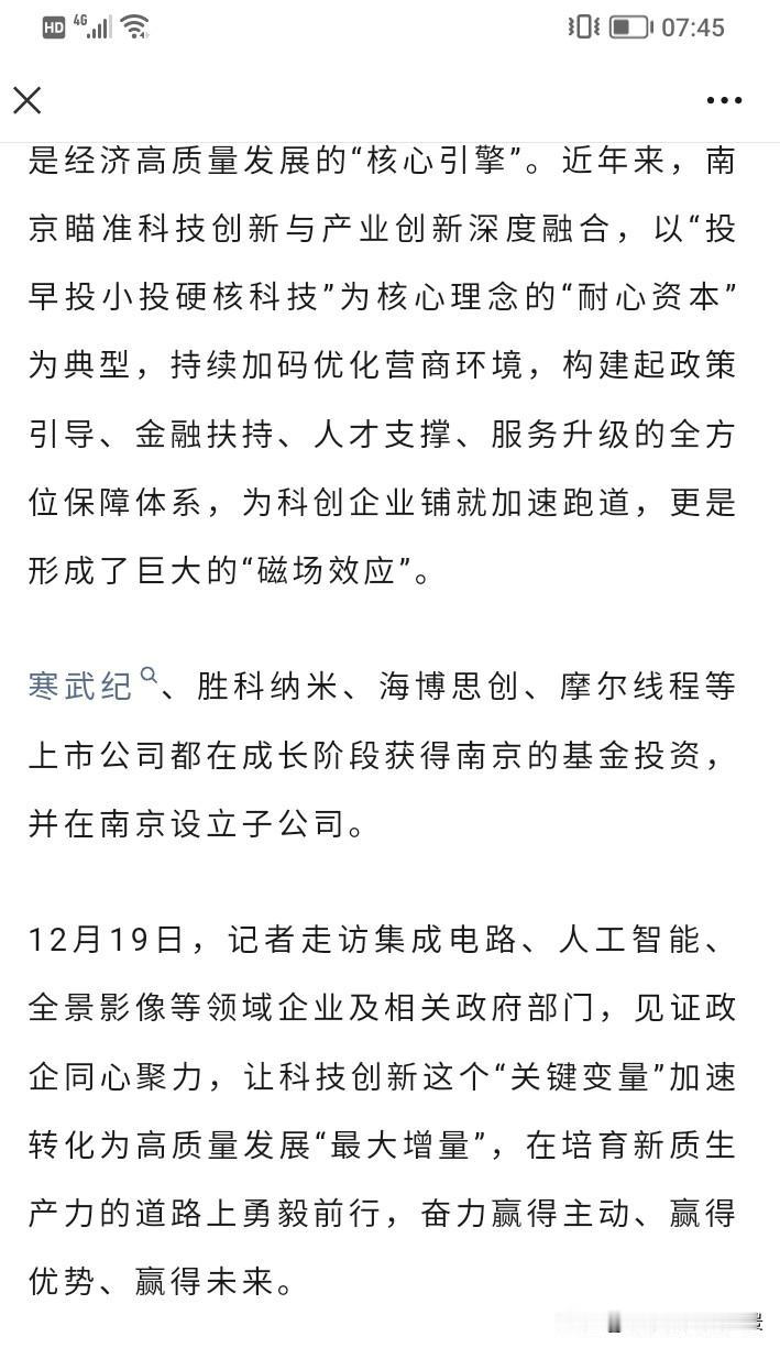 都说合肥是风投之城,其实南京也是隐藏的风投之城,在不声不响间竟然投资了那么多科技企业,比如寒武纪、摩尔线程等这些科技企业都有南京的身影,是南京在它们发展发展中投入不少资金对它们进行扶持,这下别说南京没有科技企业了,其实南京在科创方面已经完成了布局,即将到了收获期,那几个企业只是一个代表,未来会涌现出一个个带有南京标签的科技企业。 这就是南京的底气所在,毕竟南京拥有众多的科研院所,光重点实验室就有好几个,所产出的成果不会少。