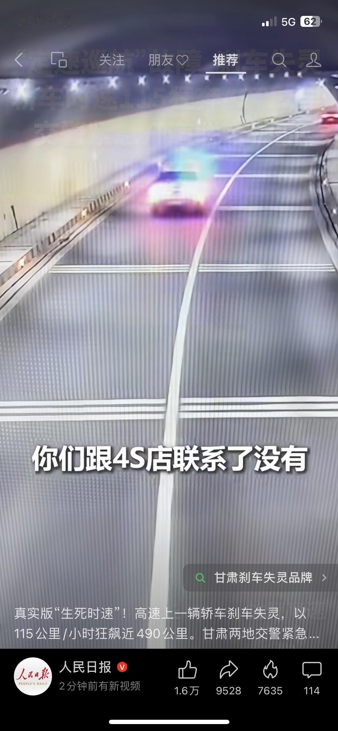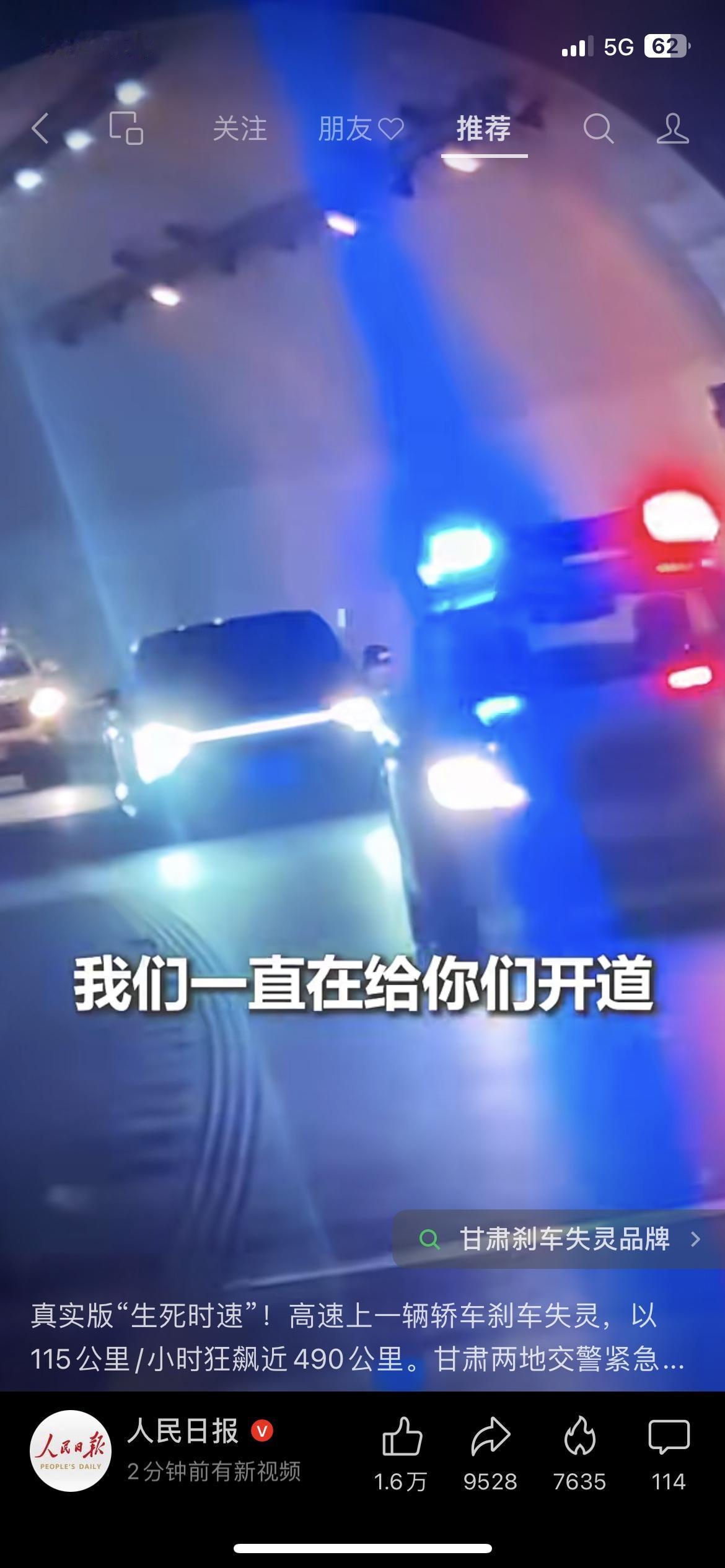 🔥甘肃高速生死时速!刹车失灵轿车狂飙490公里 开网约车的李师傅刷视频时攥紧了方向盘 轿车以115km/h在高速上失控狂奔 甘肃交警全程开道嘶吼:“我们一直在给你们开道” 🚗直到燃油耗尽车辆才停下 车上女子被搀扶下车时腿软到站不住 同行男子弯腰撑着膝盖,半天缓不过神 交警还追着问:“跟4S店联系了没?查原因了吗” 网友炸锅:“交警的守护太让人安心了”“开车前检查真的太重要” 你开车时遇过车辆故障吗?当时第一反应是啥? 甘肃高速刹车失灵 交警救援名场面
