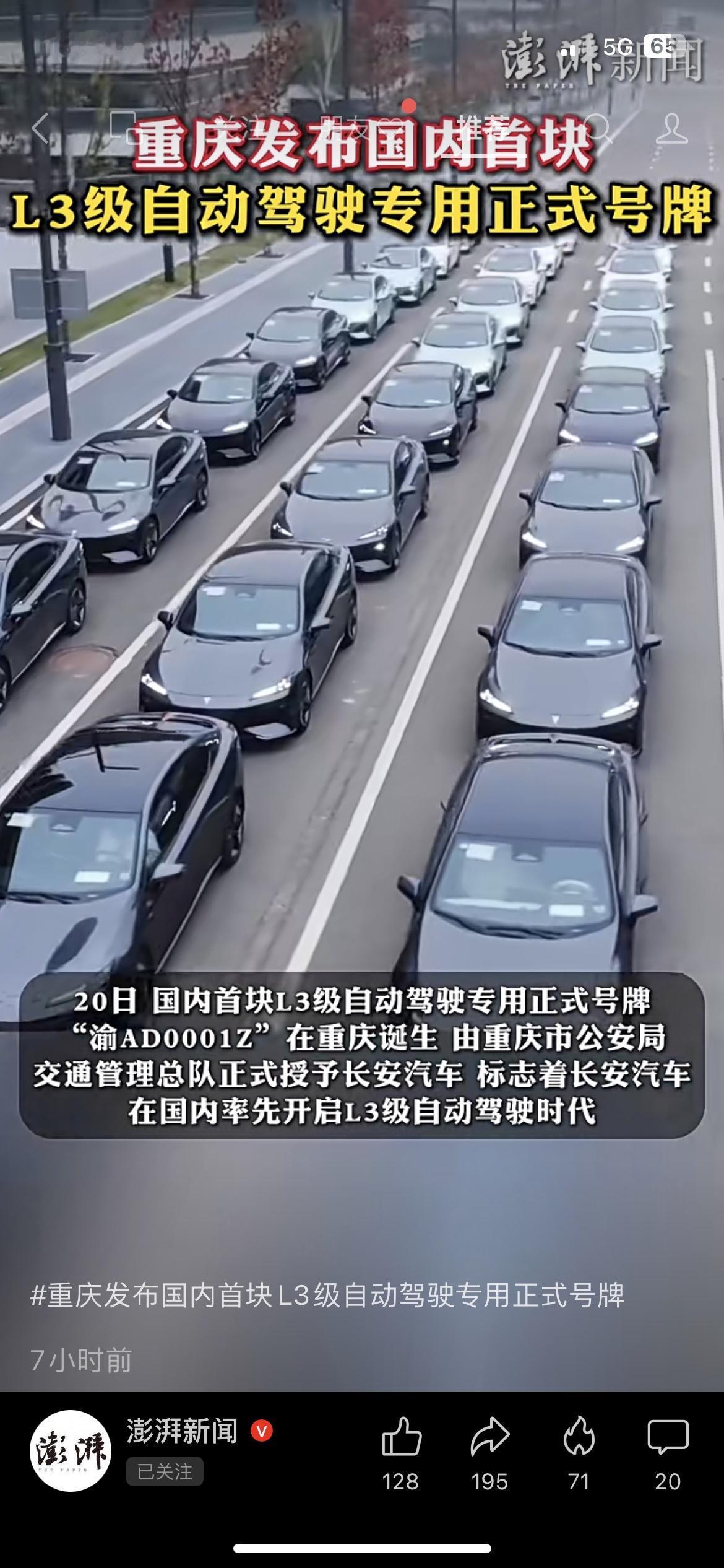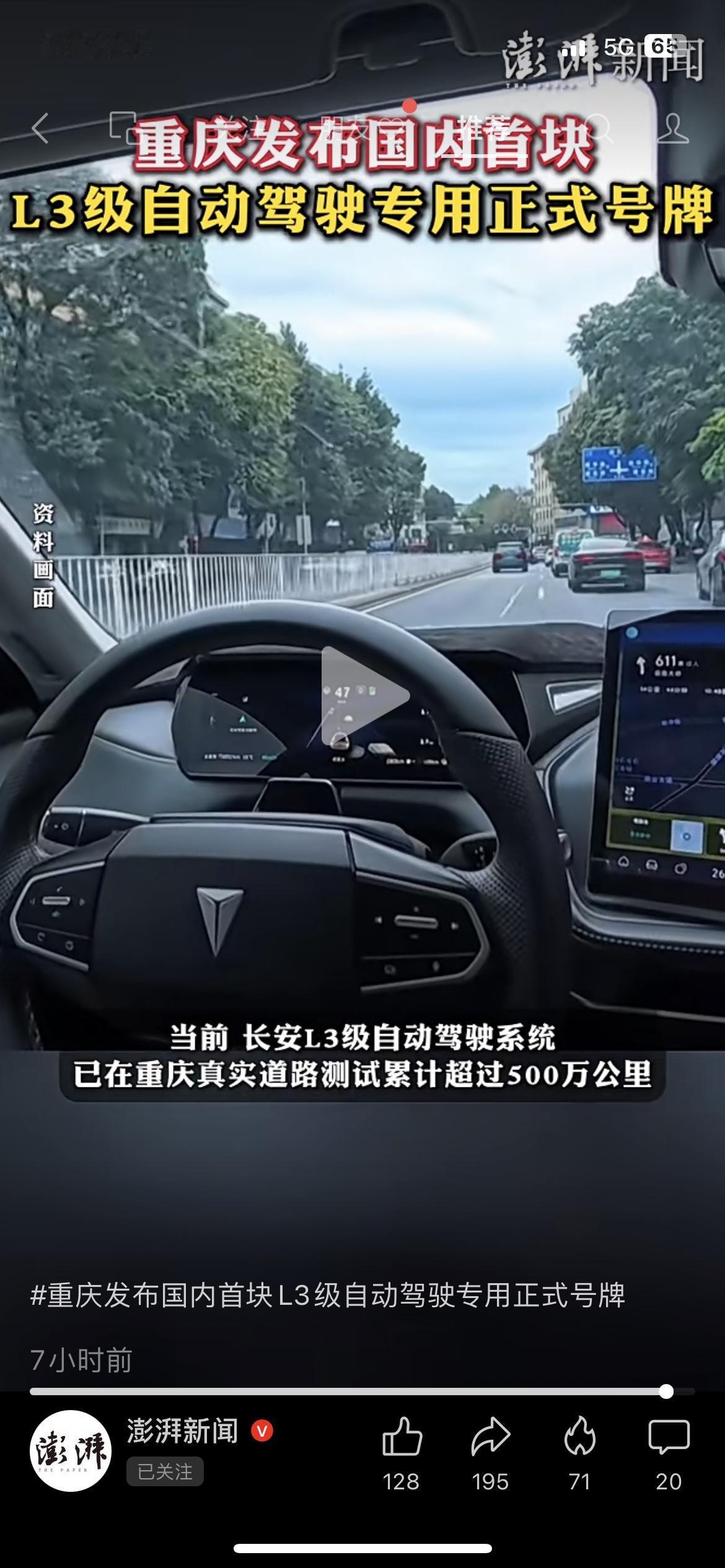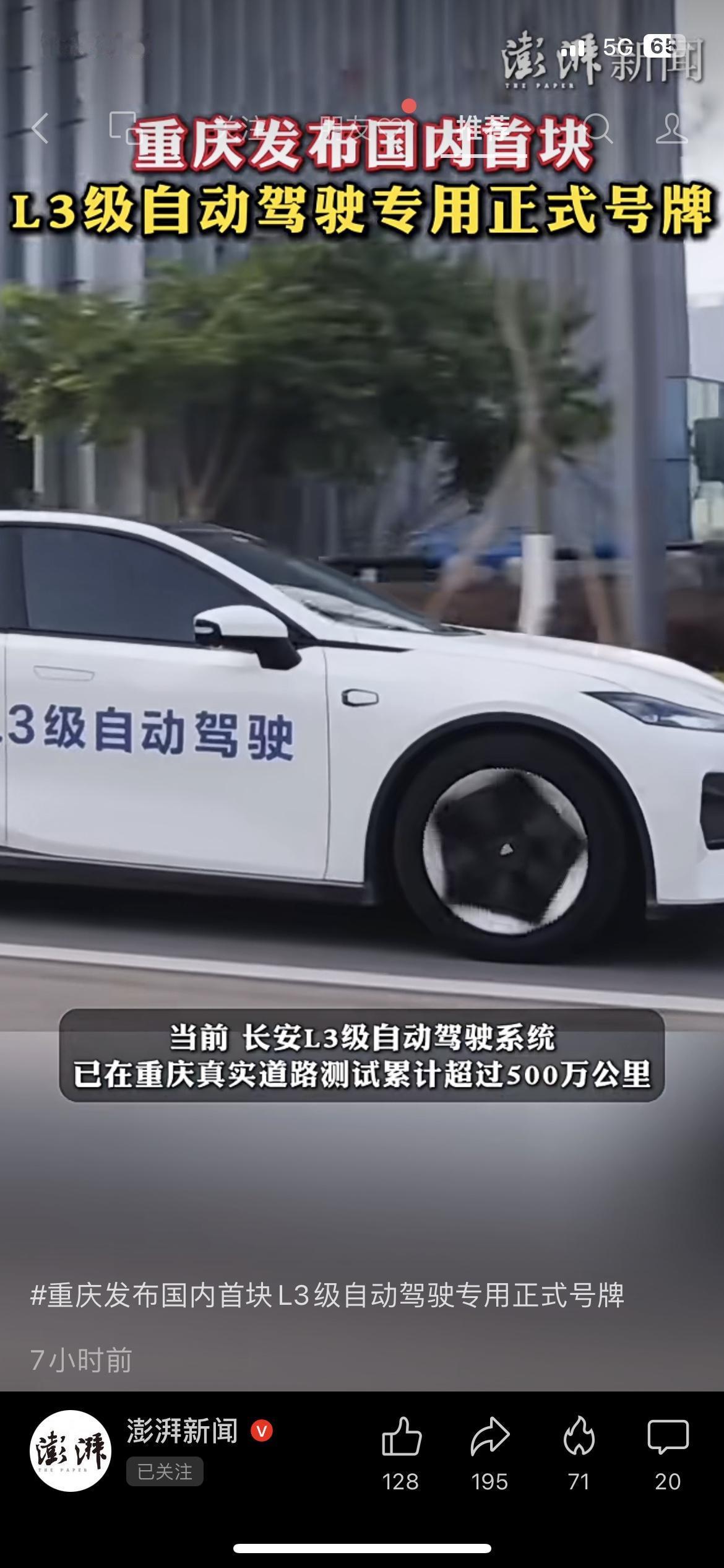 🚨重庆L3自动驾驶号牌落地!零负争议炸锅,老司机直呼不敢试 早高峰的渝州大道,挂着L3号牌的新能源车慢吞吞挪着,安全员双手悬在方向盘上,眼睛死死盯着路况。 有人说这是堵车福音,解放双脚能回消息;有人骂“零负”就是甩锅,出了事车主担责,车企全身而退? 交警明确表态,安全员必须随时接管车辆,系统失灵也不能免除车主责任。 花大价钱买的自动驾驶,到底是省心神器还是烫手山芋? 你们觉得L3自动驾驶该谁来担责?重庆智能车