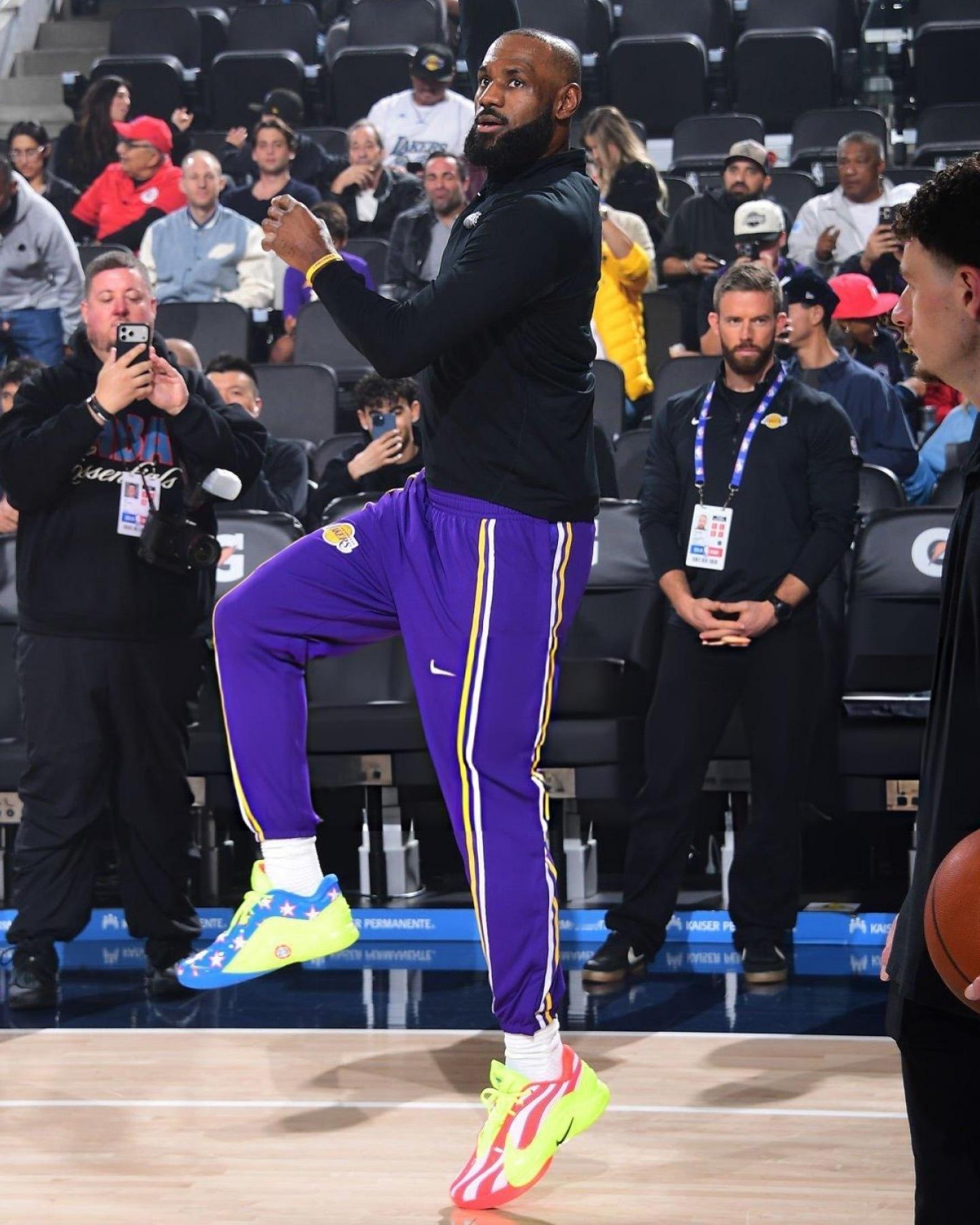 詹姆斯今日上脚Lebron22球鞋!湖人vs快船洛杉矶湖人
