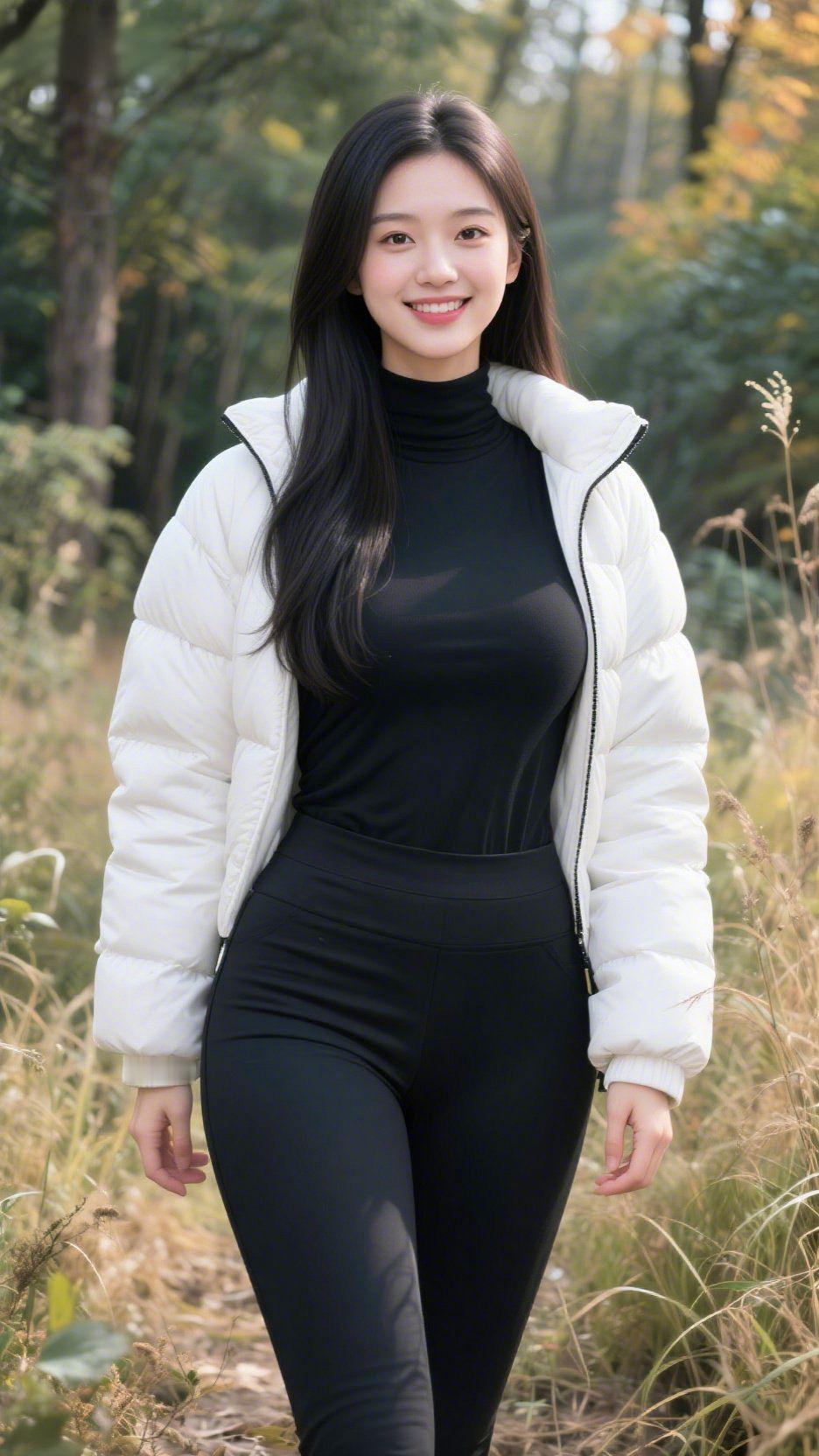 《白袄裹满秋野柔》 秋林的风携着浅黄草香,她裹着白袄走来时,蓬松绒面便沾了林间的光。内搭黑衫衬着舒展气息,衣摆轻晃的弧度,恰与秋草的软融作一处。 笑意漫开时,连风里的凉都浸了温。原来黑白从非冷调搭配,它是袄子裹住的暖,是衣料藏好的妥帖,是抬眸那刻,把秋光晕成轻软的柔。 这是郊野里的舒展模样:裹在软袄中,沾着秋的气息,是抬眼时撞进眼底的恰好安暖。 秋冬舒适穿搭 郊野轻写真