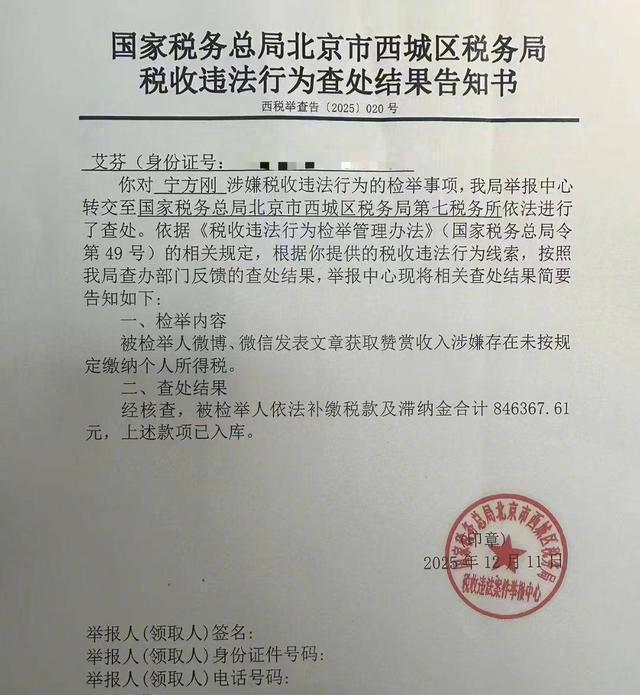 #烧伤超人阿宝回应税收举报#【84万余元补缴款引关注 “烧伤超人阿宝”回应税收举报:非偷税漏税】#博主烧伤超人阿宝否认偷税漏税# 12月19日,微博账号“急诊向日葵艾芬20”晒出一份税收违法行为查处结果告知书,内容为其举报网红医生宁方刚(网名:烧伤超人阿宝)涉嫌税收违法行为一事的处理结果,告知书显示被检举人补缴税款及滞纳金84万余元。随后,“烧伤超人阿宝”对此回应,称税务部门已明确其行为既不属于偷税也不属于漏税,其涉及微博、微信等平台的“赞赏”功能收入,是否应交税的认定,已在税务部门明确后主动完成补缴。举报者艾芬:“一直没有得到明确答复”12月20日,艾芬告诉封面新闻记者,她从两三年前就开始举报宁方刚的税务问题,因为涉及微信公众号和微博等平台,以及商城带货收入,还有不同的地址,“情况比较复杂,一直没能得到一个明确答复。”艾芬表示,据她了解,开通赞赏功能的公众账号需要绑定个人的微信支付账户,赞赏金额会直接到达绑定的个人微信号的零钱包,腾讯作为平台不分成,且打赏金额也没有从平台直接缴税,经多位公众号运营者验证赞赏金额通常很快进入零钱包,金额是原封不动的用户打赏额。腾讯表示,在赞赏功能中,腾讯只是网络服务提供者。至于税费,目前尚无明确法律法规对此有具体规定,腾讯仅在《使用协议》中表示,“腾讯仅作为提供信息发布功能的中立平台方,赞赏用户应依法缴纳的各种税费,由赞赏用户自行缴纳。”随后,微博账号“烧伤超人阿宝”发文称,“阿宝既不属于偷税也不属于漏税,这是税务系统同志明确给我说的。”“阿宝”解释称,他曾于2023年、2024年和今年与税务部门确认,前两次均没能给出明确结论,“赞赏”收入到底是否应该缴纳税费。“阿宝”称,今年10月,最后经税务部门反复研究后,确定文章“赞赏”按照劳务所得缴税,遂补缴税款和滞纳金84万余元。税法明确:“赞赏”收入算劳务所得公开资料显示,宁方刚为北京大学医学部博士、北京积水潭医院烧伤科副主任医师,其微博账号“烧伤超人阿宝”拥有160.3万粉丝,是医疗健康领域知名网红博主,事发前仍在更新工作相关内容。12月20日,封面新闻记者尝试联系宁方刚未果。艾芬告诉封面新闻记者,宁方刚曾多次发表艾芬和爱尔眼科医疗纠纷相关文章,从而获得大量打赏收入,她认为,所有自身劳动所得,都应该承担交税义务。她还提出疑问,此次税务核查的范围是否包括账号“烧伤超人阿宝”的所有“赞赏”收入,以及是否包括“烧宝商城”的带货收入。此次事件引发关注,还在于内容创作者打赏收入的税务认定问题,自媒体文章、短视频等内容的打赏收入是否需要缴税、按何种税目缴税,一直缺乏明确统一的标准。根据《中华人民共和国个人所得税法实施条例》第六条第二项规定,劳务报酬所得是指个人从事劳务取得的所得,包括从事设计、装潢、安装、制图、化验、测试、医疗、法律、会计、咨询、讲学、翻译、审稿、书画、雕刻、影视、录音、录像、演出、表演、广告、展览、技术服务、介绍服务、经纪服务、代办服务以及其他劳务取得的所得。封面新闻记者注意到,艾芬和宁方刚都曾提到的“赞赏功能使用协议”,确实将赞赏资金划定为“赠与”,但也明确,腾讯仅作为提供信息发布功能的中立平台方,赞赏用户应依法缴纳的各种税费,由赞赏用户自行缴纳。此次事件中,宁方刚将“赞赏”收入按劳务所得申报,依法补缴税款及滞纳金,更加明确了“赞赏”收入应按劳务所得缴税这一事实。(封面新闻)