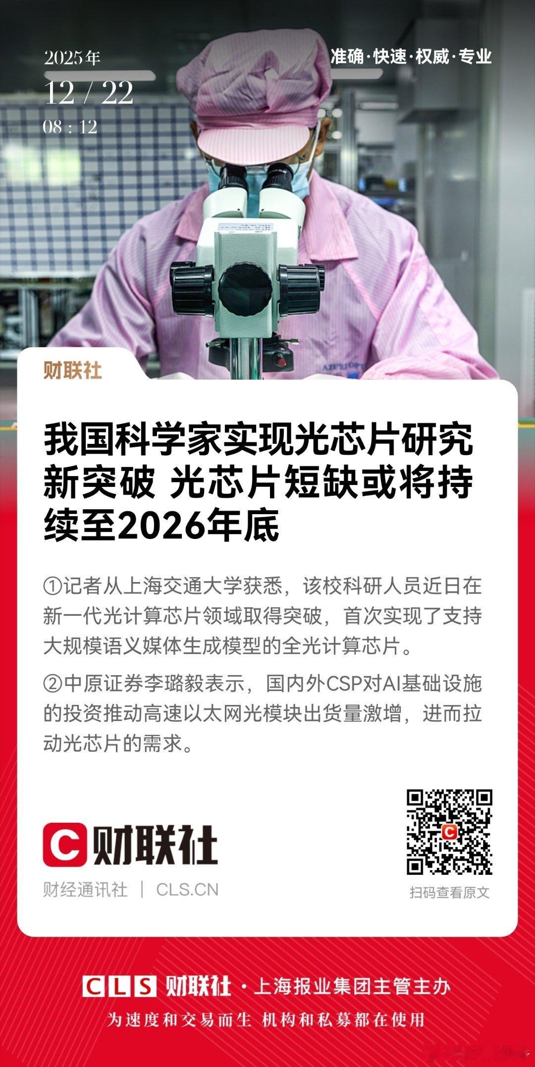 我国科学家实现光芯片研究新突破光芯片短缺或将持续至2026年底