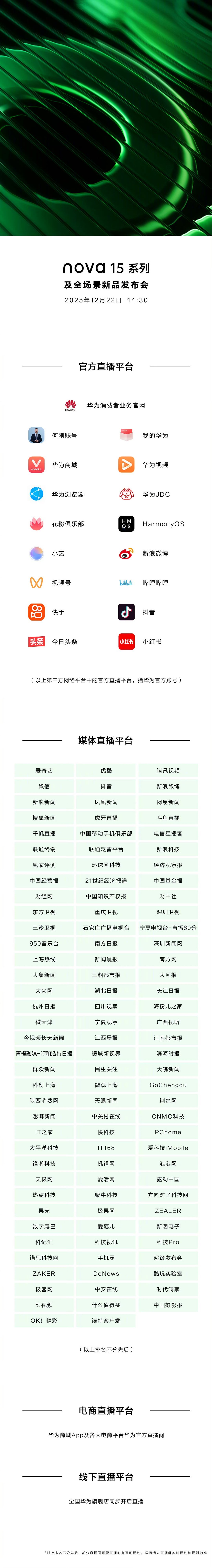 「枫」头正劲,nova 15系列今天正式登场。这次的外观,我个人还是挺喜欢的。出发去现场摸摸,下午见 华为nova15及全场景新品发布